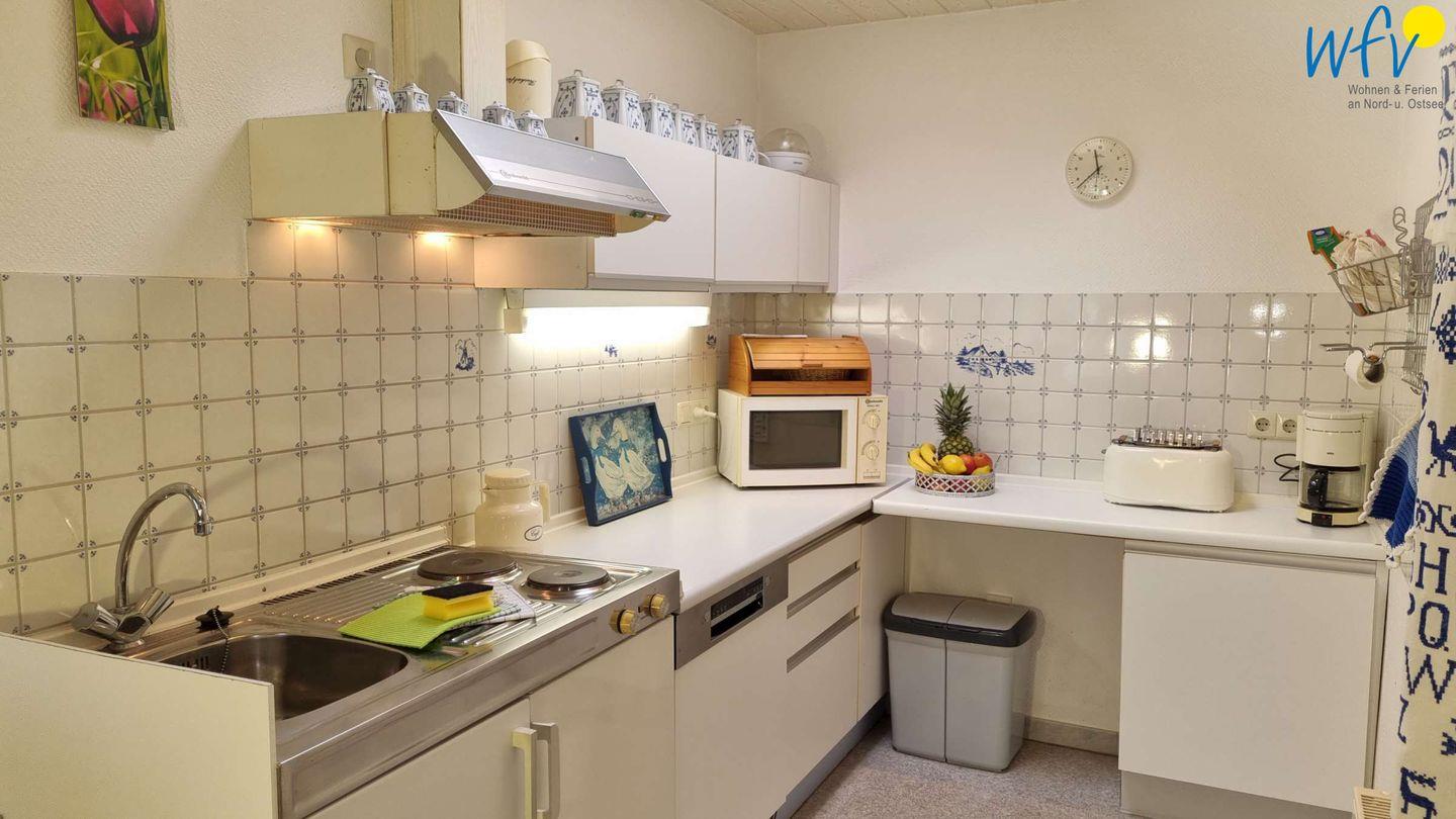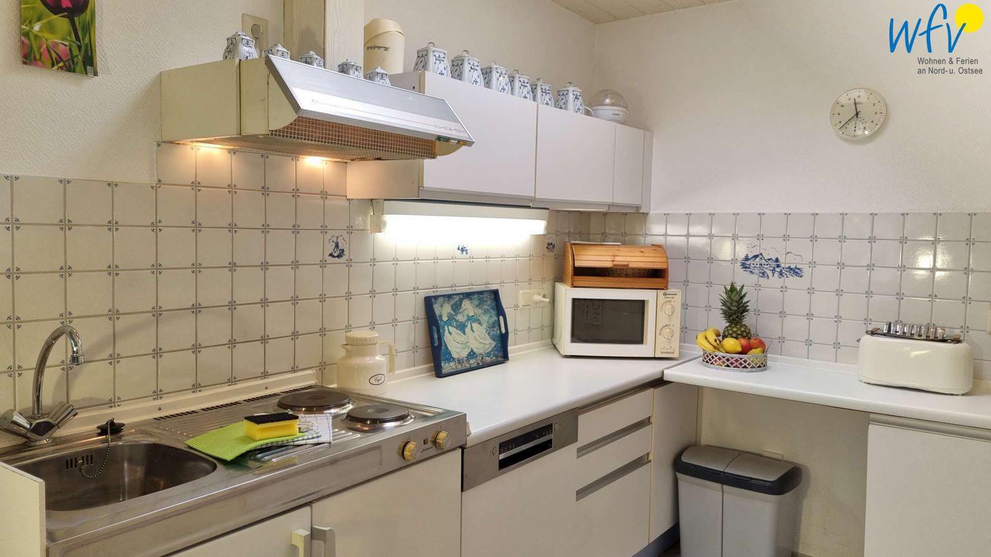 Beim ausgiebigen Ferienfrühstück starten Sie ruhig und entspannt in den Urlaubstag. Kaffee, Toast und gekochte Eier lassen sich bequem in der separaten Küche mit 2-Plattenherd, Mikrowelle, Spülmaschine etc. zubereiten. So können Sie gemütlich den bevorstehenden Urlaubstag auf Borkum planen - mit Fahrradtour, Strandspaziergang oder Badetag.