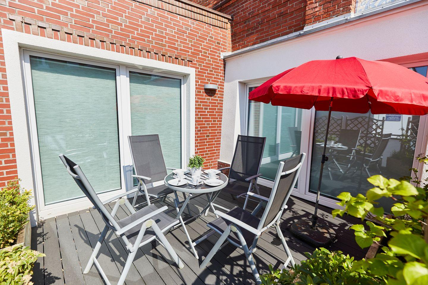 Moderne Ferienwohnung auf Borkum mit zwei Schlafzimmern und Terrasse, zentral und nah am Strand gelegen.