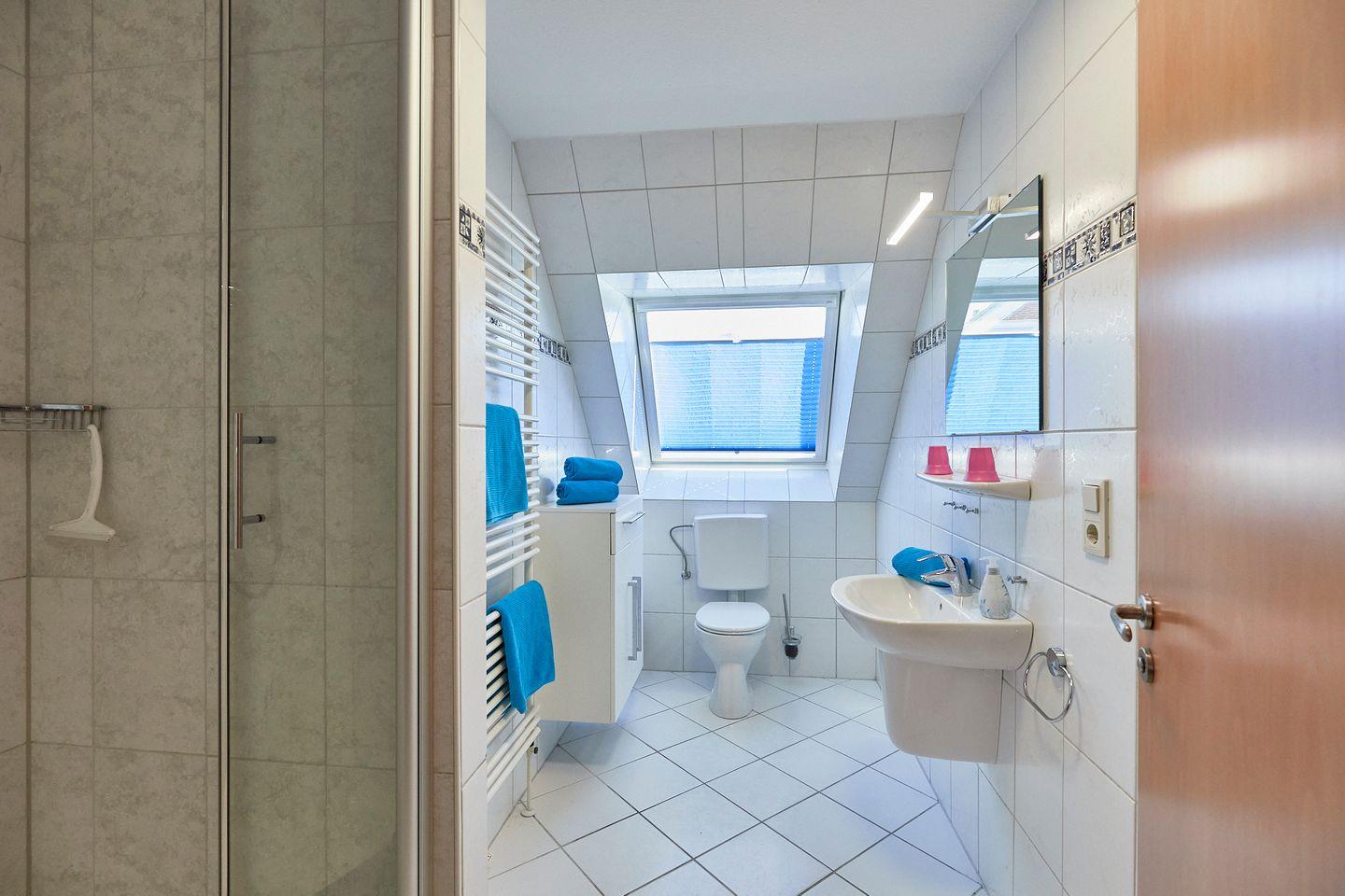 Ein besonderes Highlight der Ferienwohnung ist das Tageslichtbad mit mit Dusche. Hier können Sie sich nach einem Tag am Strand erfrischen und entspannen. Für zusätzlichen Komfort stehen Ihnen auch Waschmaschine und Trockner zur Verfügung, sodass Sie sich um Ihre Wäsche kümmern können, während Sie die Umgebung erkunden.