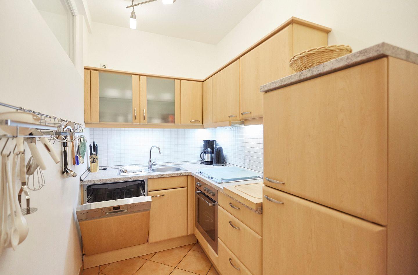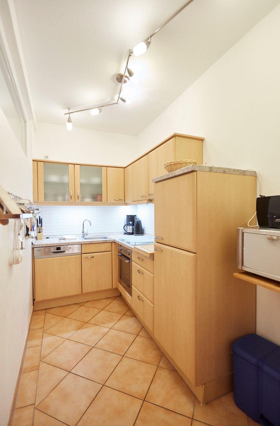 Die stilvolle Wohnung befindet sich im Erdgeschoss und überzeugt durch ihre moderne Ausstattung. Eine offene Küche, die perfekt in das helle Wohnzimmer integriert ist, lädt dazu ein, gemeinsame Mahlzeiten zu genießen. Hier stehen Ihnen alle notwendigen Geräte zur Verfügung: ein Cerankochfeld, ein Backofen, eine Mikrowelle und eine Spülmaschine sind nur einige Highlights. Genießen Sie Ihr Frühstück am Esstisch oder entspannen Sie in der bequemen Sofaecke, während Sie einen Film auf dem digitalen Fernseher schauen oder ein gutes Buch lesen.
