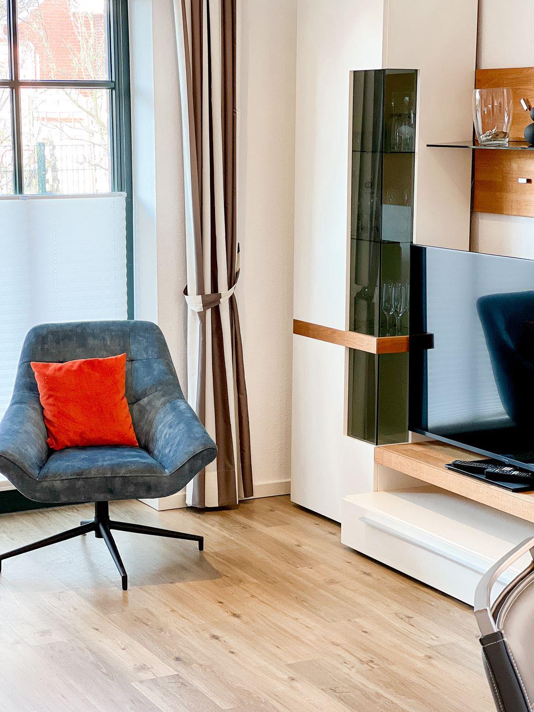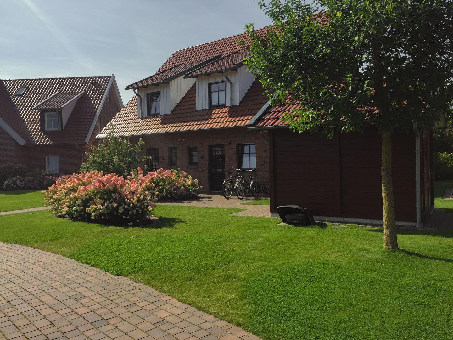 Bei schönem Wetter lädt die Terrasse sowie der Balkon dazu ein, die frische Nordseeluft zu genießen. Gartenmöbel stehen bereit, sodass Sie die Ruhe und den Blick auf den Garten in vollen Zügen auskosten können. Zudem ist ein Strandkorb am Strand inbegriffen, was bedeutet, dass Sie einen perfekten Platz für entspannte Stunden am Wasser haben.