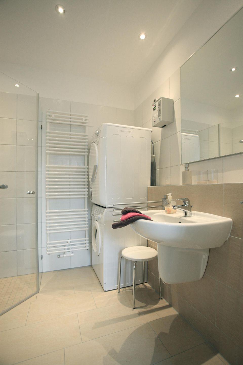 Zusätzlich steht ein zweites Badezimmer – ebenfalls mit bodengleicher Dusche, WC und Fußbodenerwärmung – zur Verfügung. Waschmaschine und Trockner (gegen Gebühr) sorgen dafür, dass Sie sich rundum wohlfühlen.