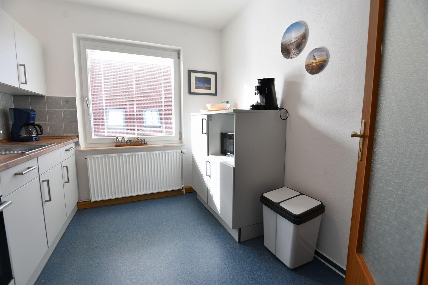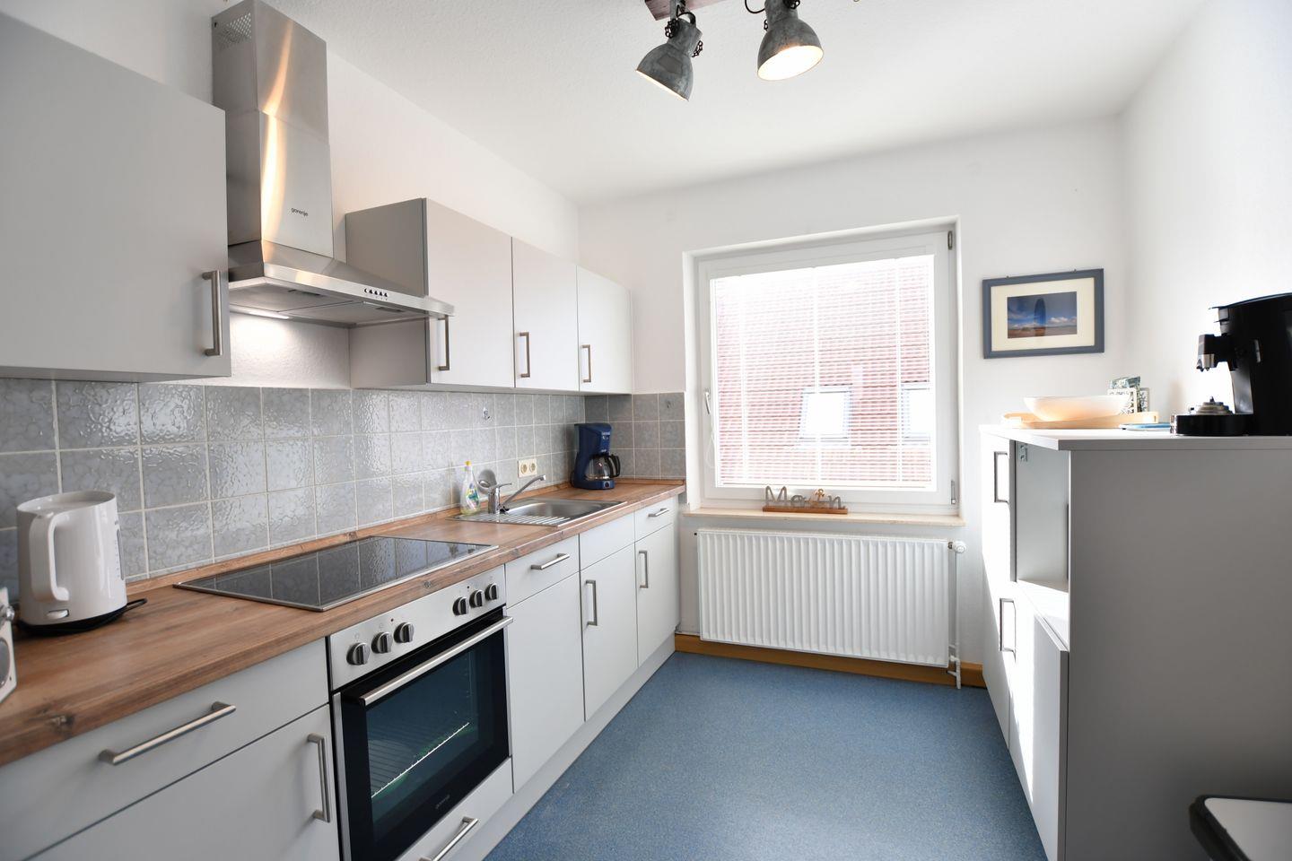 Borkum, die größte der ostfriesischen Inseln bietet für jede und jeden alles, was einen schönen und entspannten Urlaub ausmacht. Erholung am Strand, in den Dünen, bei einer Wanderung oder Strand- und Wassersport sind nur einige Ideen, wenn man an einen Urlaub auf unserer Insel denkt. Dazu gehört die richtige Unterkunft, die Sie bei uns in der ersten Etage finden. Wir als echte Borkumer bieten Ihnen auf ca. 47 m² einen großen Teil dessen, was Erholung bedeutet. Wir sind vor Ort und stehen Ihnen gerne für Fragen zur Verfügung. Die Wohnungen sind mit allem ausgestattet, was Sie benötigen. Ein Wohnzimmer mit einer gemütlichen Couch, einem TV und einem Esstisch. Ein WLan Anschluss ist obligatorisch. Ein Internetradio finden Sie in der gut ausgestatteten Küche. Spülmaschine, Herd mit Backofen, Mikrowelle, Kaffeemaschine, Toaster, Wasserkocher und eine Kaffeepadmaschine stehen Ihnen ebenso zur Verfügung, wie alle Kochutensilien, die für ein 5 Gänge Menü benötigt werden, dabei gibt es auf der Insel genug Restaurants, die Ihnen die Arbeit gerne abnehmen. Im Schlafzimmer erwartet Sie ein großes Doppelbett und ein Schrank mit genügend Platz für alle Wetterkleidung die Sie vielleicht benötigen. Und die große Garderobe im Flur freut sich auf Jacken und Mäntel. Das Tageslicht-Bad mit Dusche (Duschwanne), Waschbecken und WC ist hell und freundlich, ebenso, wie die ganze, modern eingerichtete Wohnung.