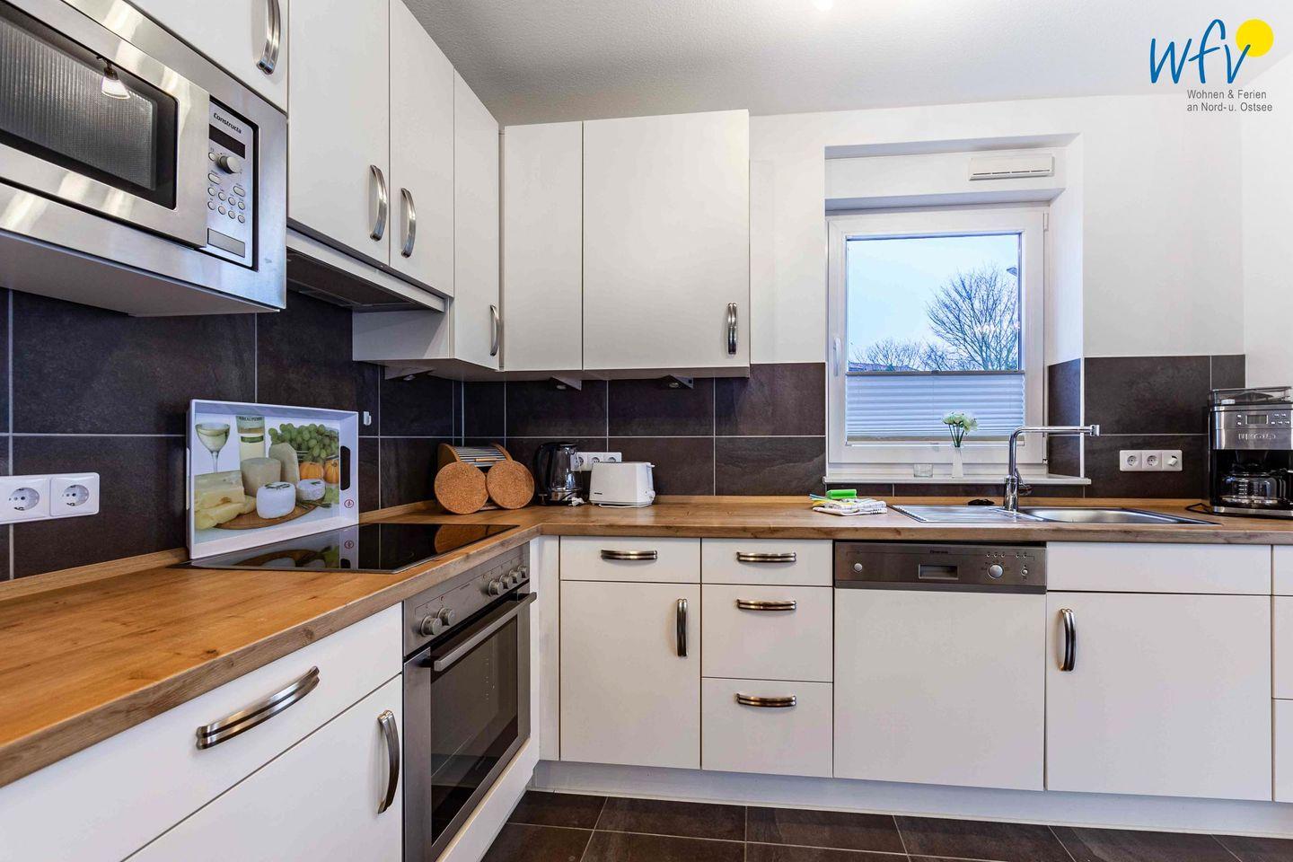 Auch das Kochen macht im Urlaub richtig Spaß! In der modernen Küche mit Herd, Backofen und Mikrowelle lassen sich leckere Gerichte zaubern. Den Abwasch übernimmt die Spülmaschine.