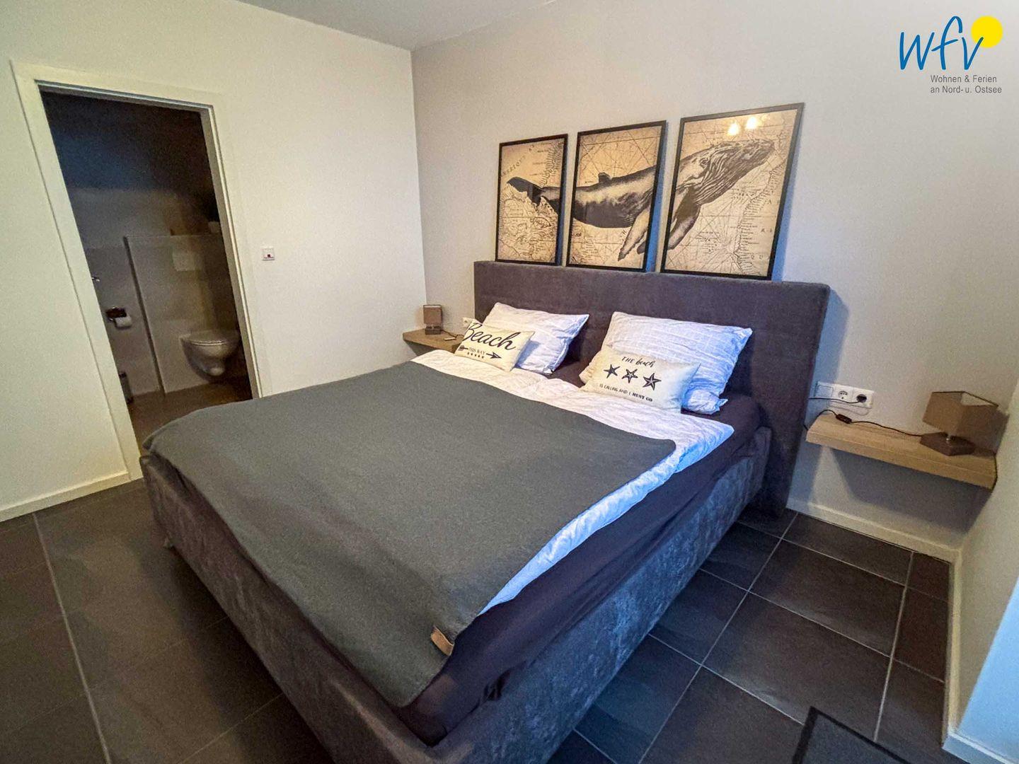 Herrlich ausschlafen können Sie in den zwei separaten Schlafzimmern der Borkumer Ferienwohnung. Sie sind jeweils mit einem bequemen Doppelbett ausgestattet.