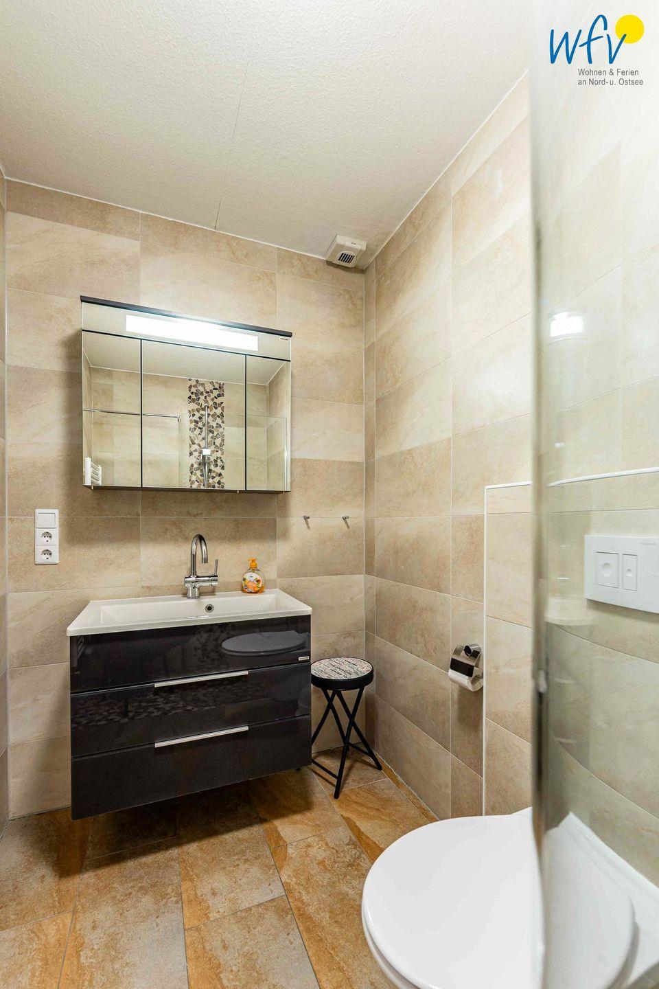 Zwei stilvolle Bäder mit Dusche und WC sorgen für angenehme Ausweichmöglichkeiten.