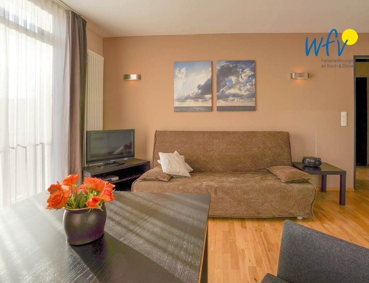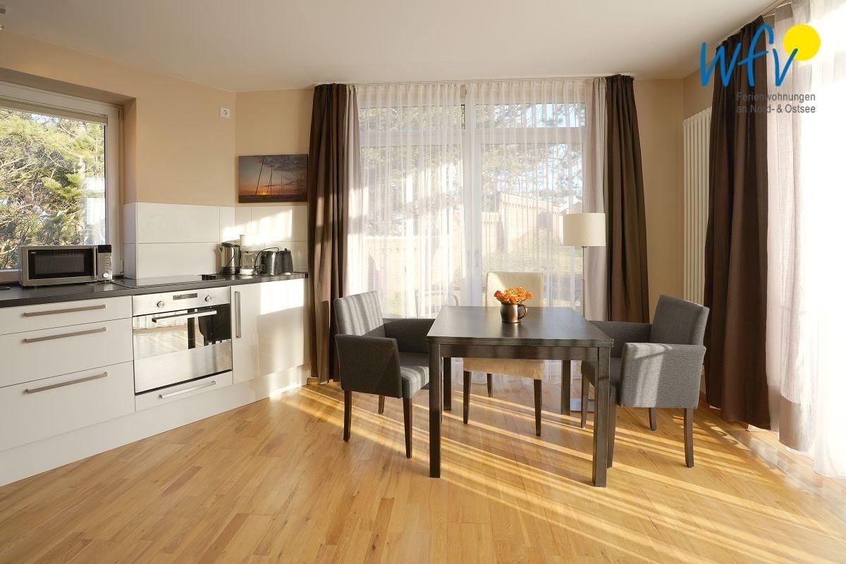 Das gemütliche Apartment befindet sich im 1. Obergeschoss und besteht aus einem Schlafzimmer, einem Wohnzimmer mit Küchenzeile, einem Vorraum mit Garderobe sowie einer sonnigen Dünenterrasse. Gemütliches Mobiliar - harmonierend mit dem hübschen Eichenparkett - raumhohe Fenster und eine dimmbare Deckenbeleuchtung machen die Ferienwohnung zu Ihrer ganz persönlichen Erholungsinsel!