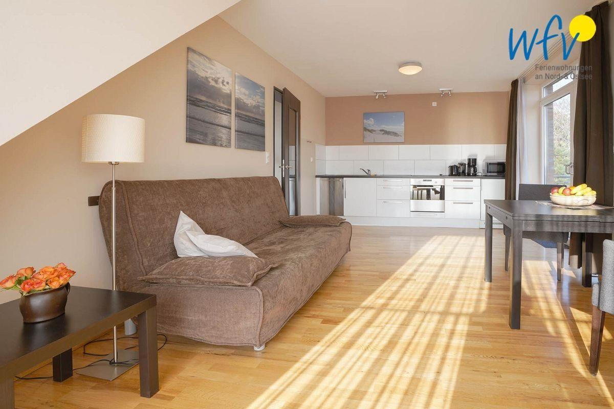 Die voll ausgestattete Einbauküche macht die Selbstverpflegung in Ihrem Urlaub zum Kinderspiel! Sie verfügt u.a. über einen Kühlschrank, ein Ceranfeld mit 4 Kochstellen, eine Mikrowelle, einen Geschirrspüler, eine Kaffeemaschine, einen Toaster und einen Wasserkocher sowie über ein umfangreiches Töpfe- und Pfannen-Sortiment, Schüsseln und diverse Putzutensilien. Sollten Sie sich zwischendurch kulinarisch verwöhnen lassen wollen, finden Sie im nahegelegenen Ortskern empfehlenswerte Restaurants, die Ihnen eine leckere Nordseeküche servieren!
