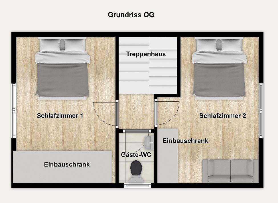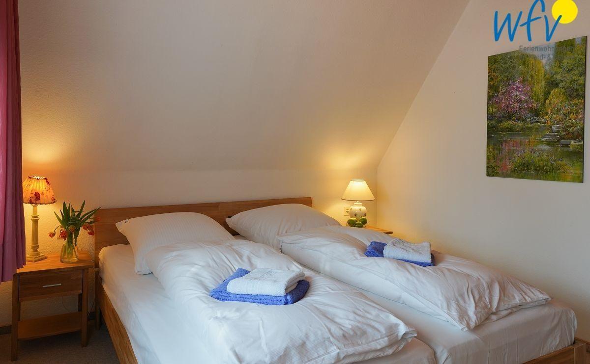 Die zwei separaten Schlaf- und Gästezimmer der Borkumer Ferienwohnung sind mit jeweils einem Doppelbett ausgestattet. Die Größe der Liegeflächen beträgt bei allen Schlafstellen 2 m x 90 cm. Auf Wunsch stellen wir Ihnen gerne ein Kinderbettchen und einen Hochstuhl zur Verfügung.