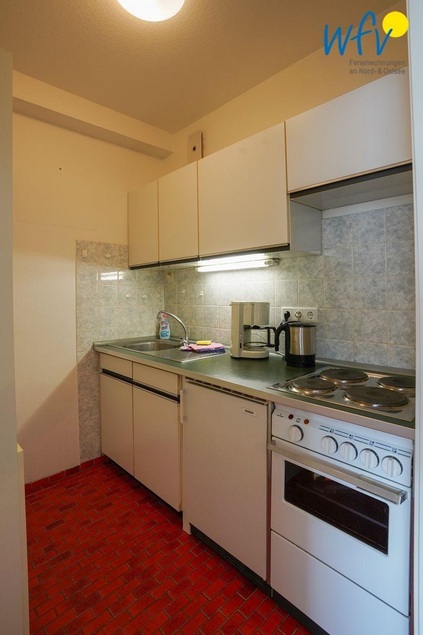 Die Borkumer Ferienwohnung verfügt über einen Wohnraum, ein separates Schlafzimmer, eine Küchenzeile und ein Badezimmer.
