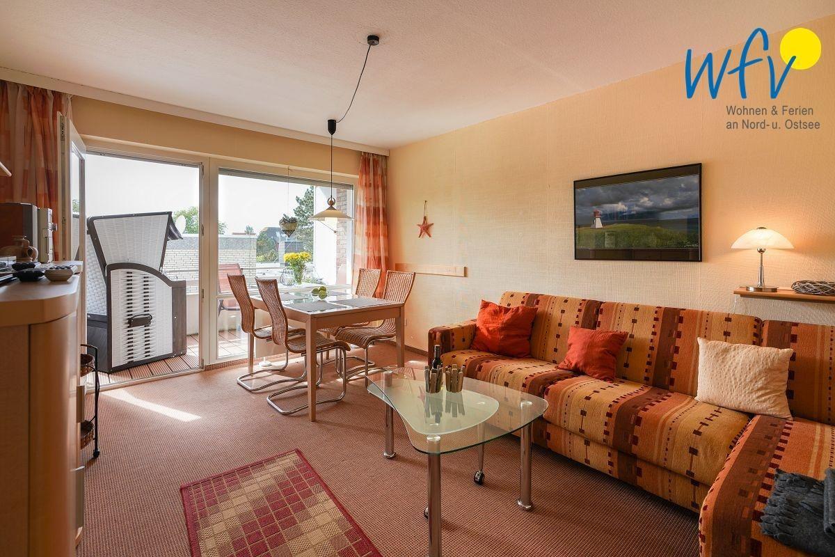 Herrlich entspannen können Sie auch im Wohnzimmer der Ferienwohnung. Es ist u.a. mit einer (Schlaf-)Couchgarnitur sowie mit einem Flat-TV, einem Blu-ray-Player und einer Stereoanlage eingerichtet. Das Zimmer ist ein heller, lichtdurchfluteter, zur Südseite gelegener Raum mit großer Fensterfront und direktem Zugang zum Balkon.