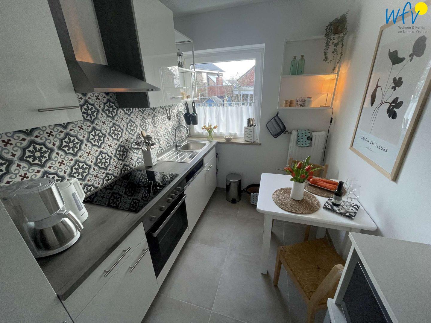 In der modernen Einbauküche mit Ceranfeld, Backofen und Mikrowelle wird die Selbstverpflegung zum Kinderspiel. Hier lassen sich sowohl die Sandwiches für den Strand fix zubereiten, als auch das Urlaubsdinner am Abend. Den Abwasch erledigt die Spülmaschine. Sollten Sie auswärts essen wollen, finden Sie im Borkumer Ortskern viele empfehlenswerte Restaurants, die Ihnen eine köstliche Nordseeküche servieren.