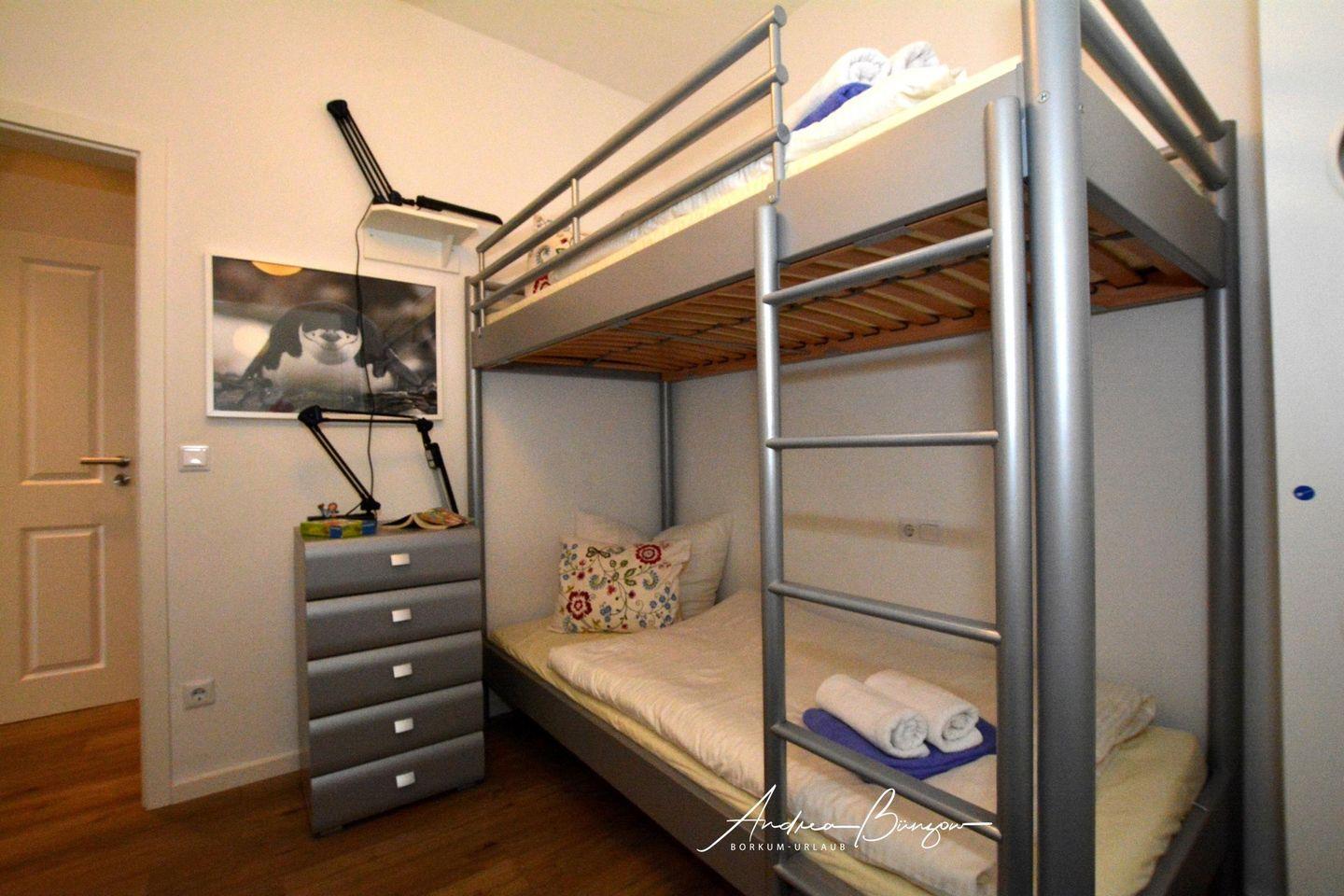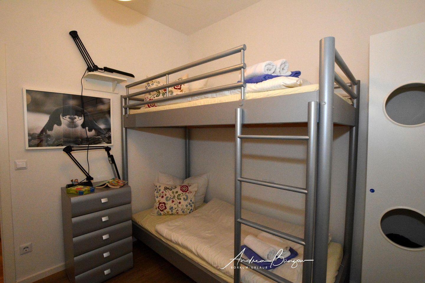 zwei Schlafräume - eines davon mit einem großen Doppelbett (Boxspring 160x200) und das andere mit einem komfortablen Etagenbett (90x200).