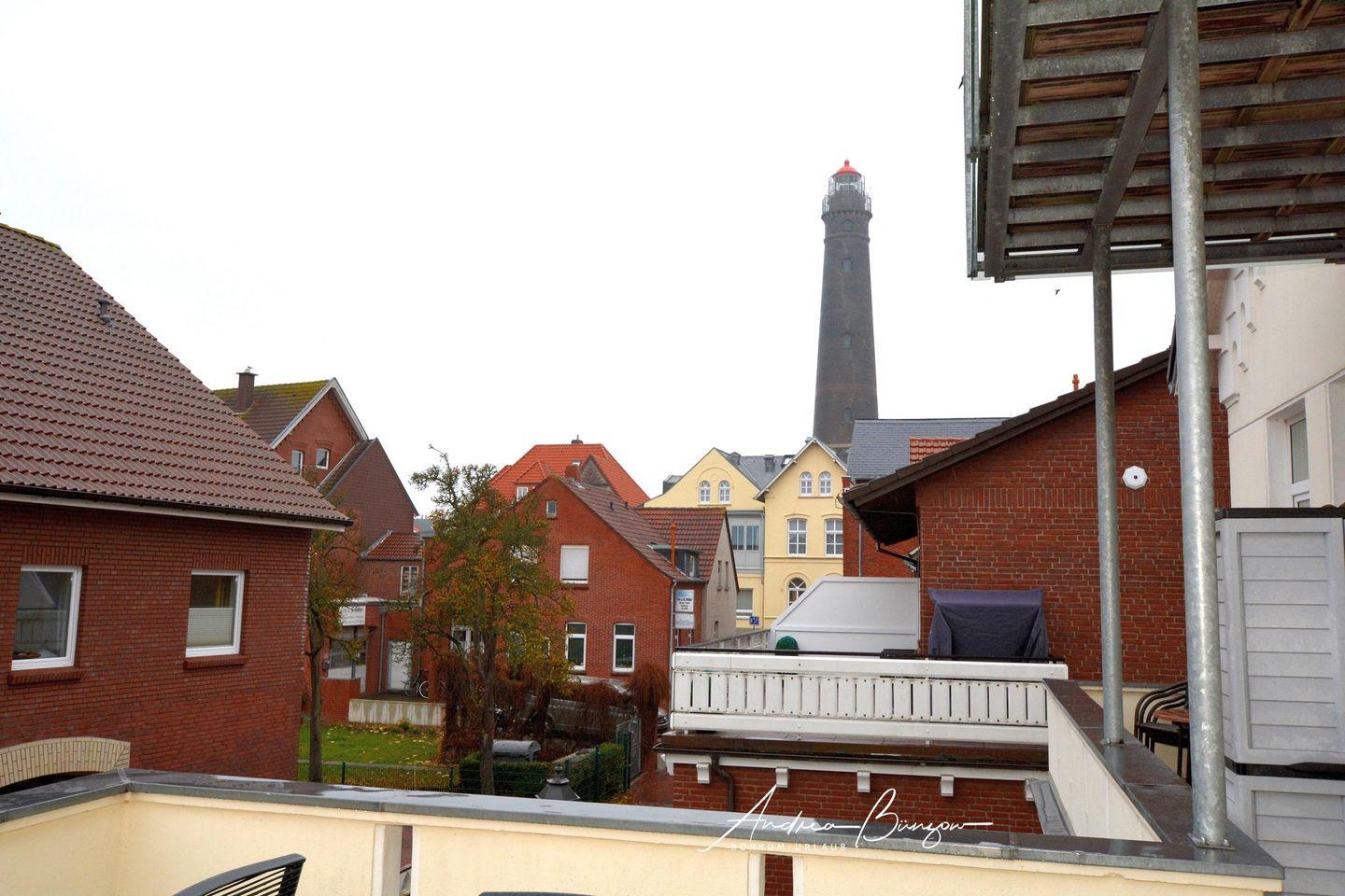 Das Objekt liegt in einer ruhigen Seitenstraße, von der großen Dachterrasse hat man einen guten Blick auf den neuen Leuchtturm.