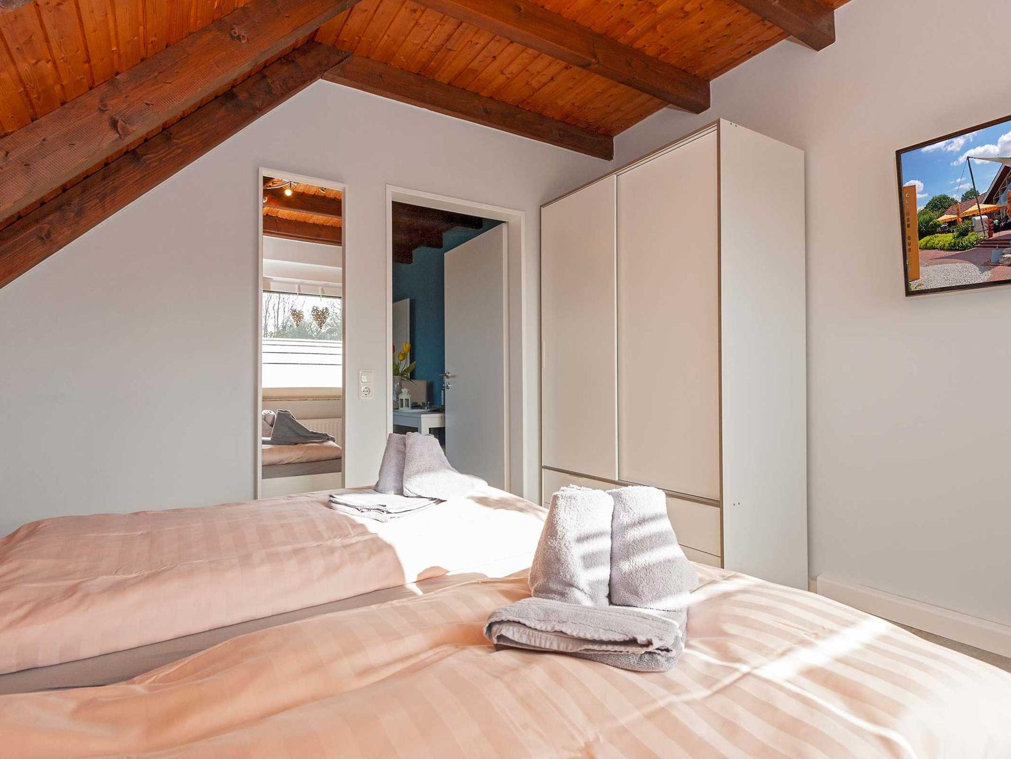 Die Ferienwohnung verfügt über 1 separates Schlafzimmer, kombinierter Wohnraum mit Schlafsofa und einer voll ausgestatteten Küche mit Geschirrspüler. Badezimmer mit Dusche/WC und einer Überkopf-Regendusche. Alle Wohnungen verfügen über einen 49 Zoll-Smart-TV im Wohnbereich und einen zusätzlichen Smart-TV im Schlafzimmer. W-Lan, Nichtraucher, allergikergeeignet.