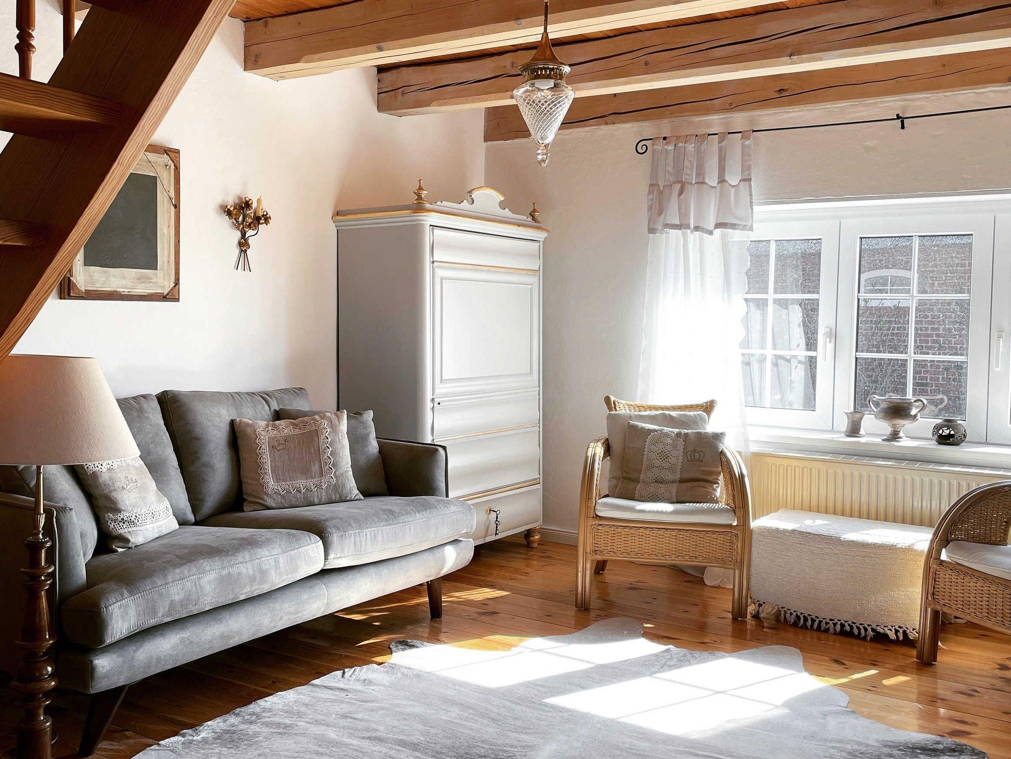 Liebevoll eingerichtete Ferienwohnung über 2 Etagen in separat stehender Reetdachkate für 4 Personen.