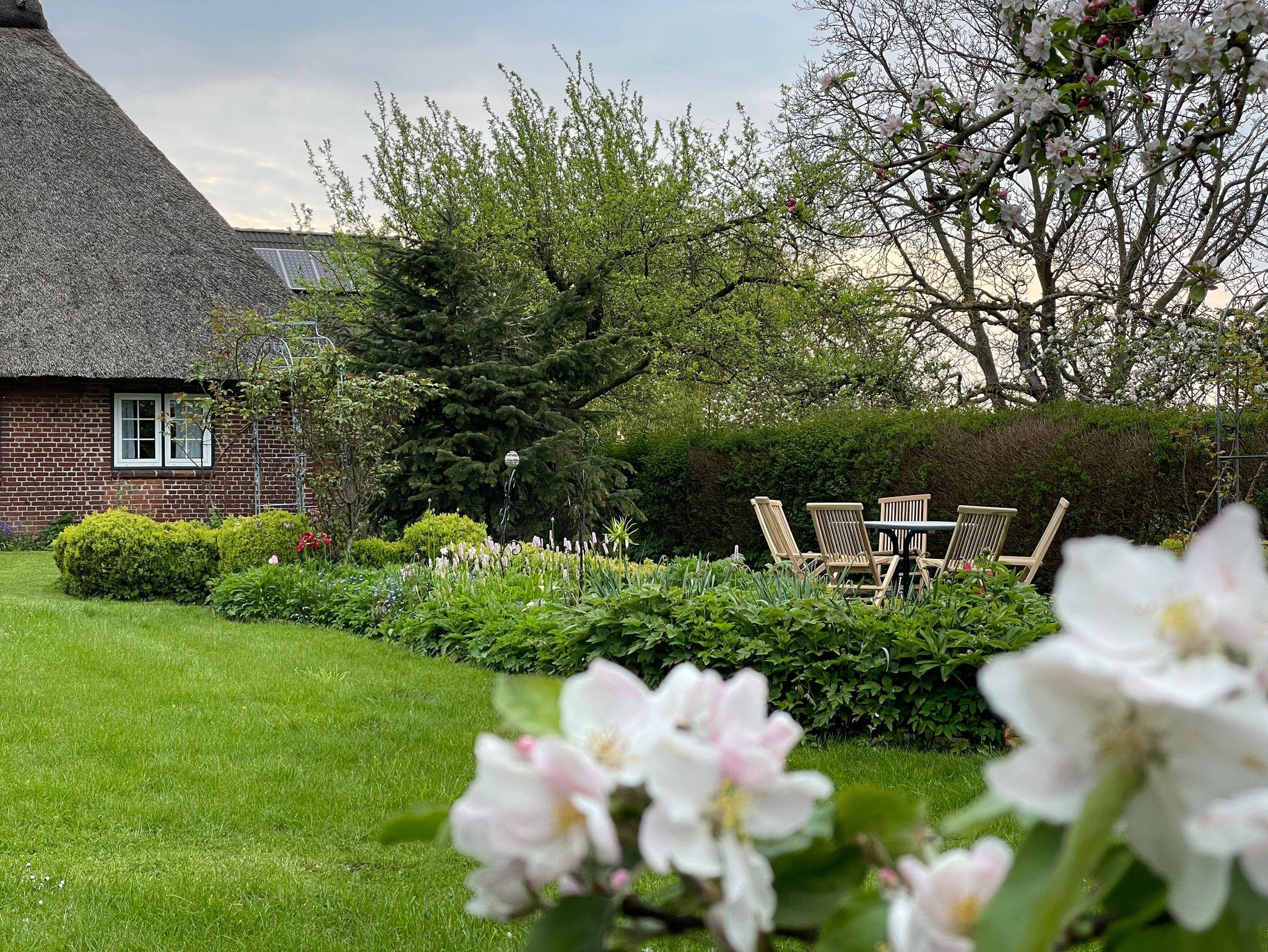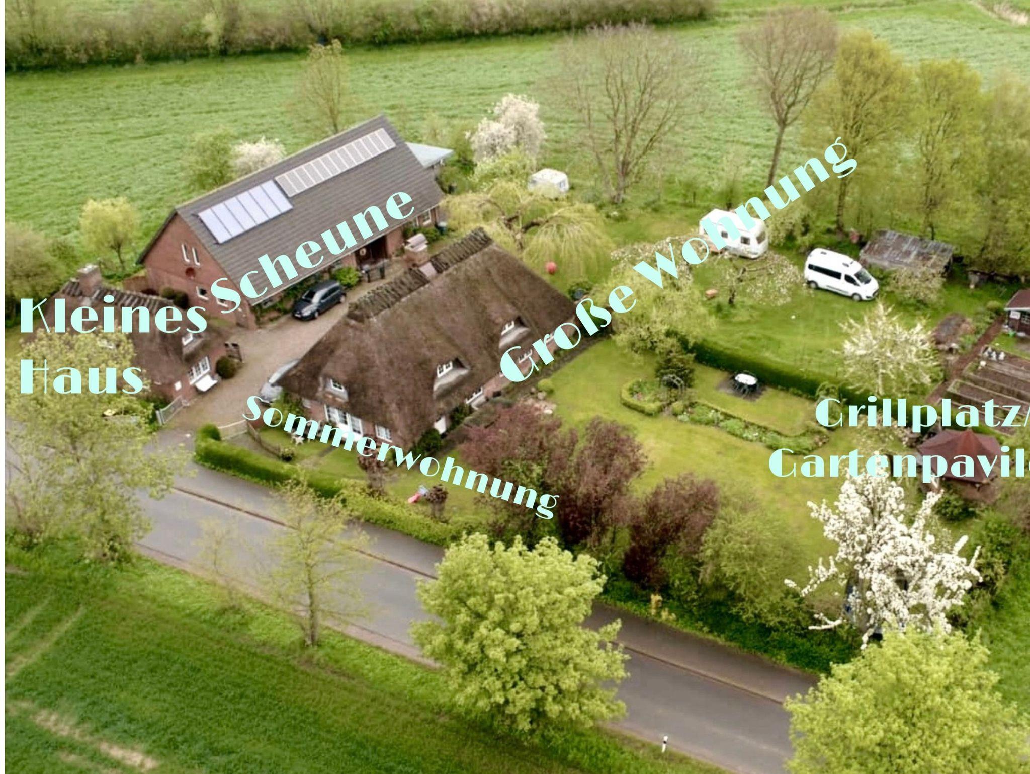 Auf dem Grundstück befindet sich ein weiteres Reetdachhaus mit zwei Ferienwohnungen und eine große Scheune.