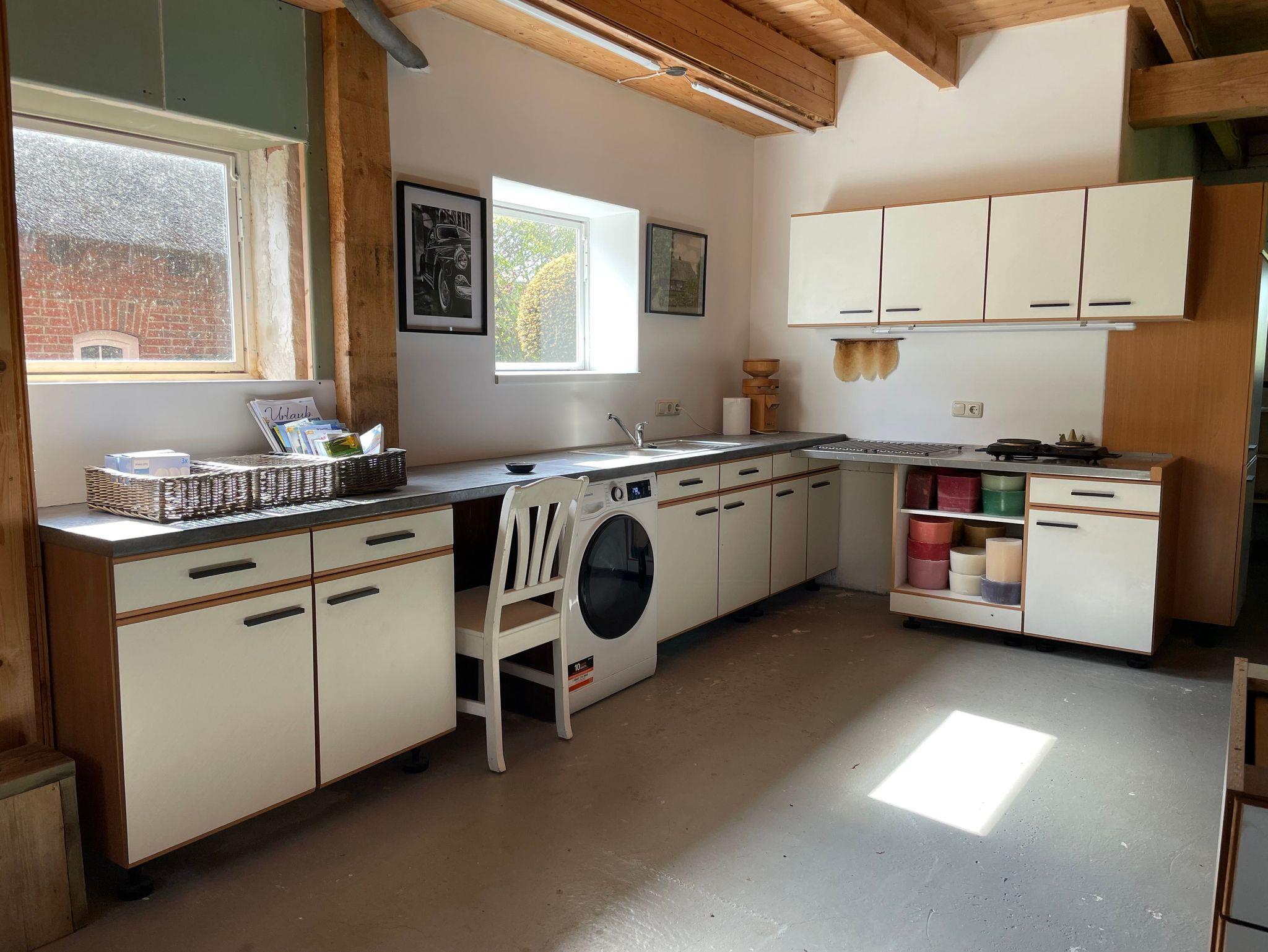 Fahrräder und Ähnliches können in der Scheune untergestellt werden. Dort befindet sich auch die Waschmaschine.
