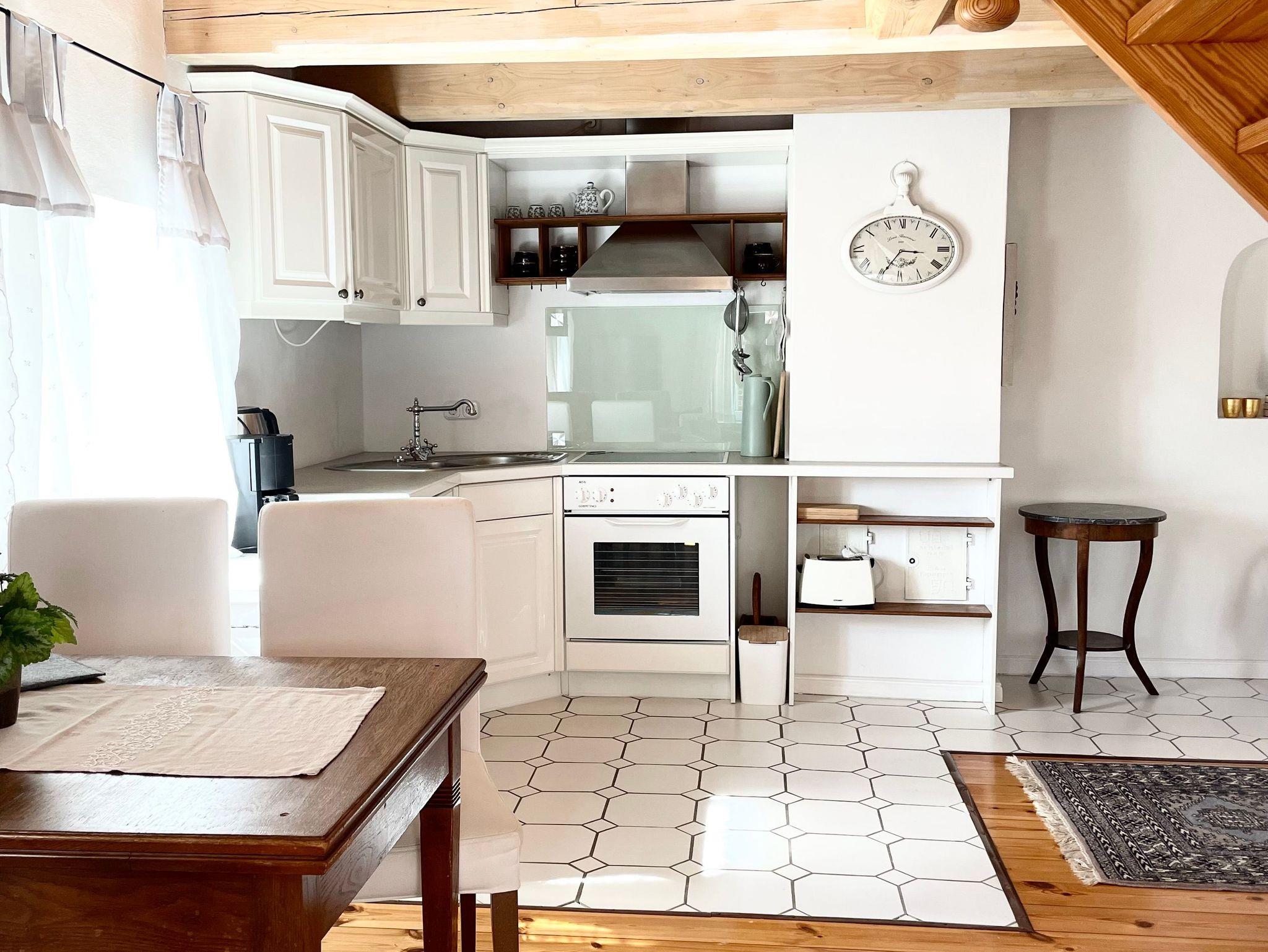 Die Wohnung ist ca. 54 m² groß. Im Erdgeschoss befindet sich eine offene Küche mit Esstisch, eine Sitzecke mit Smart TV und ein kleines Duschbad.
