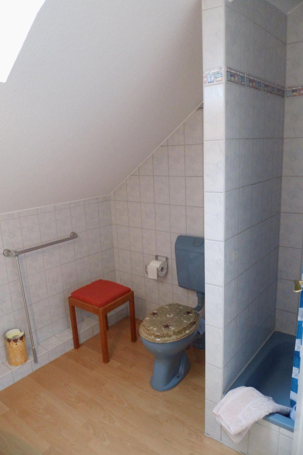 In der ca. 30m² großen Ferienwohnung erwartet Sie im Erdgeschoss ein gemütlicher Wohnraum mit einer Sitzgruppe und SAT-TV. Die Couch kann auch als Schlafgelegenheit genutzt werden. Weiterhin finden Sie hier die kleine komplett eingerichtete Küche vor. Neben allen wichtigen Küchenutensilien stehen weiterhin eine Mikrowelle, ein Toaster, ein zwei-Platten-Herd und ein Kühlschrank mit Gefrierfach für Sie bereit. Der Esstisch für vier Personen lädt nicht nur zum gemeinsamen Speisen sondern auch zum geselligen Beisammensein ein. Über eine offene Treppe gelangen Sie in den Schlafbereich mit einem Doppelbett und einem Kleiderschrank zum Verstauen Ihrer Garderobe. Ebenfalls befindet sich hier das Duschbad mit WC.