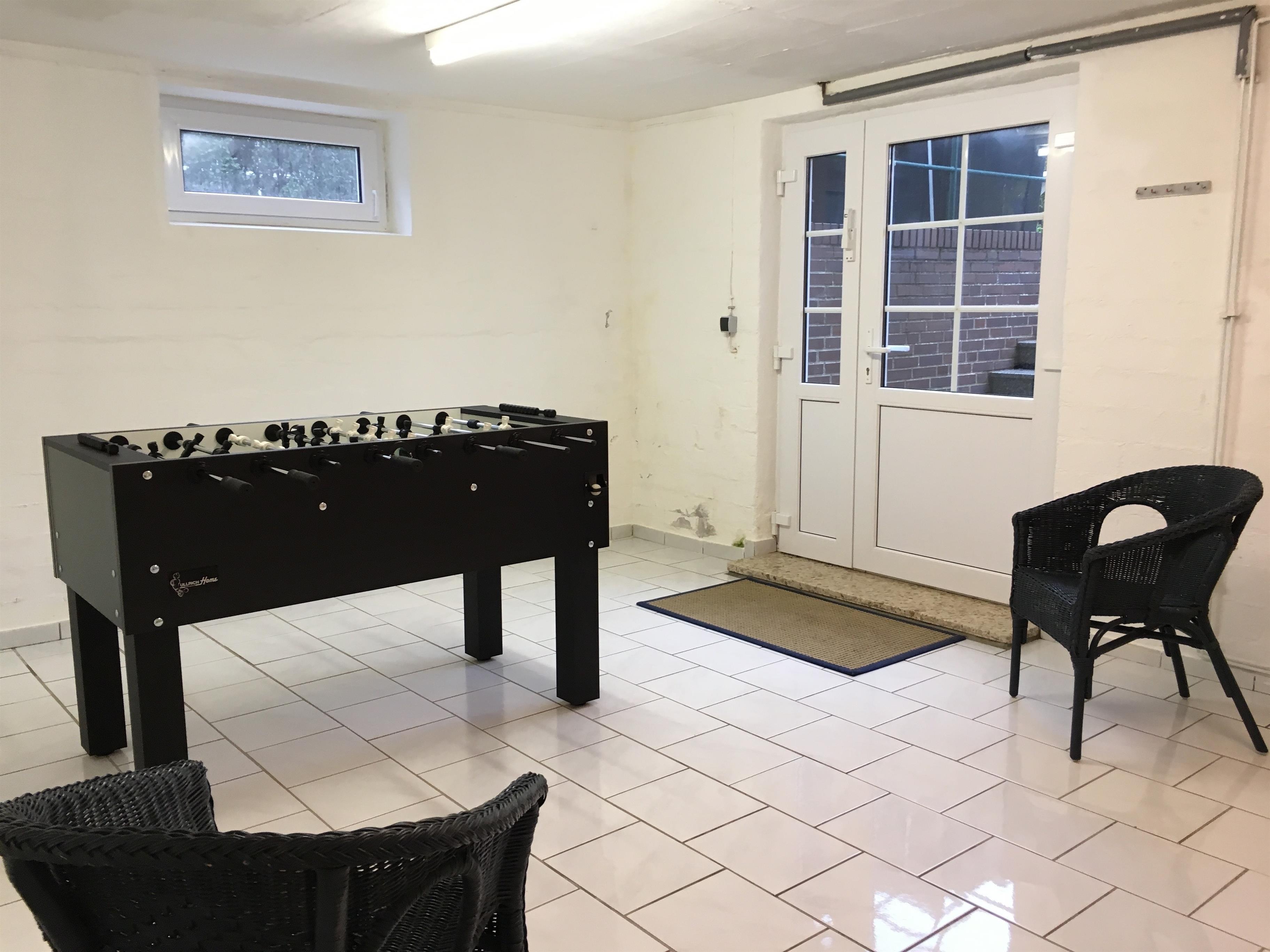 Geschirrtücher, Bettwäsche und Handtücher können angemietet werden. Unterstellmöglichkeiten für Fahrräder und Bollerwagen sind vorhanden. Eine zusätzliche Terrasse befindet sich auf dem Rasengrundstück. Als Freizeitangebot bieten wir Ihnen einen Kickertisch und eine Tischtennisplatte im Keller des Hauses zur freien Verfügung an. Waschmaschine, Trockner und Tiefkühler auf Anfrage.