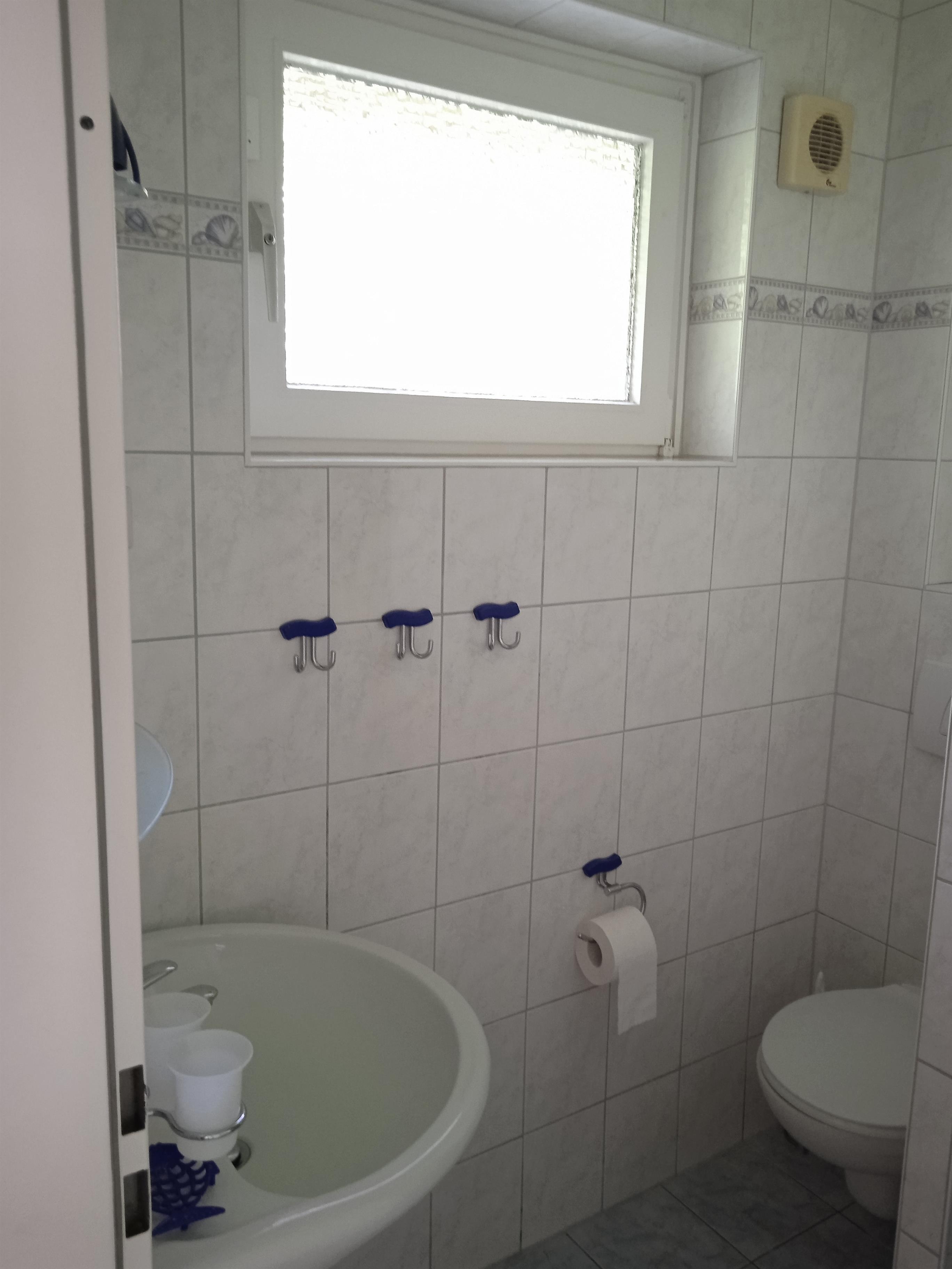 sowie einem Duschbad mit Fenster.