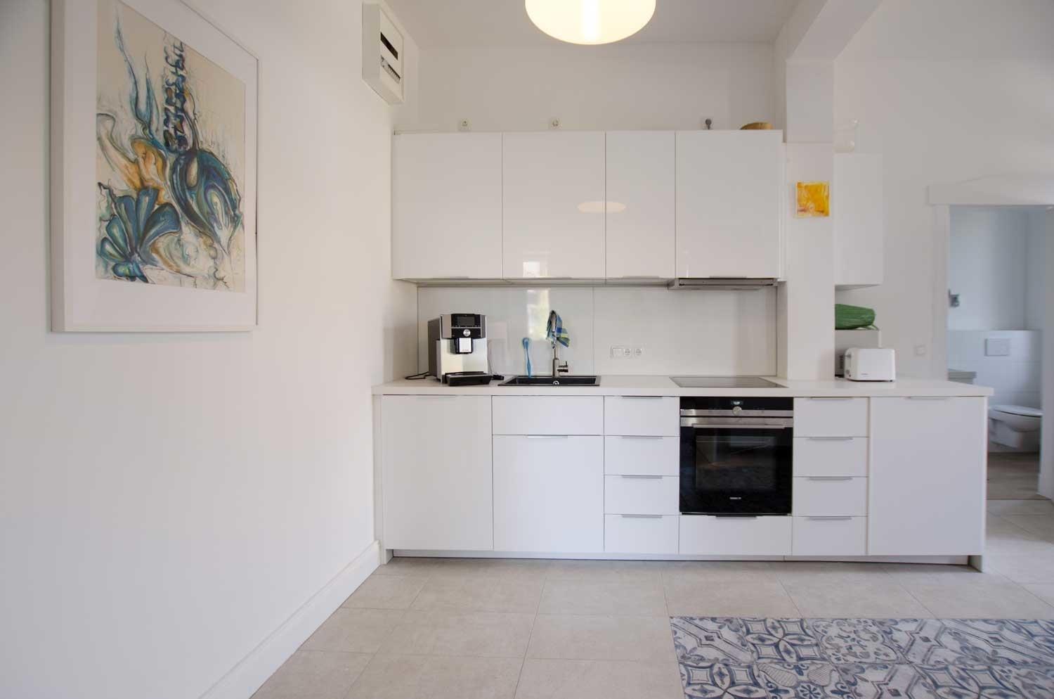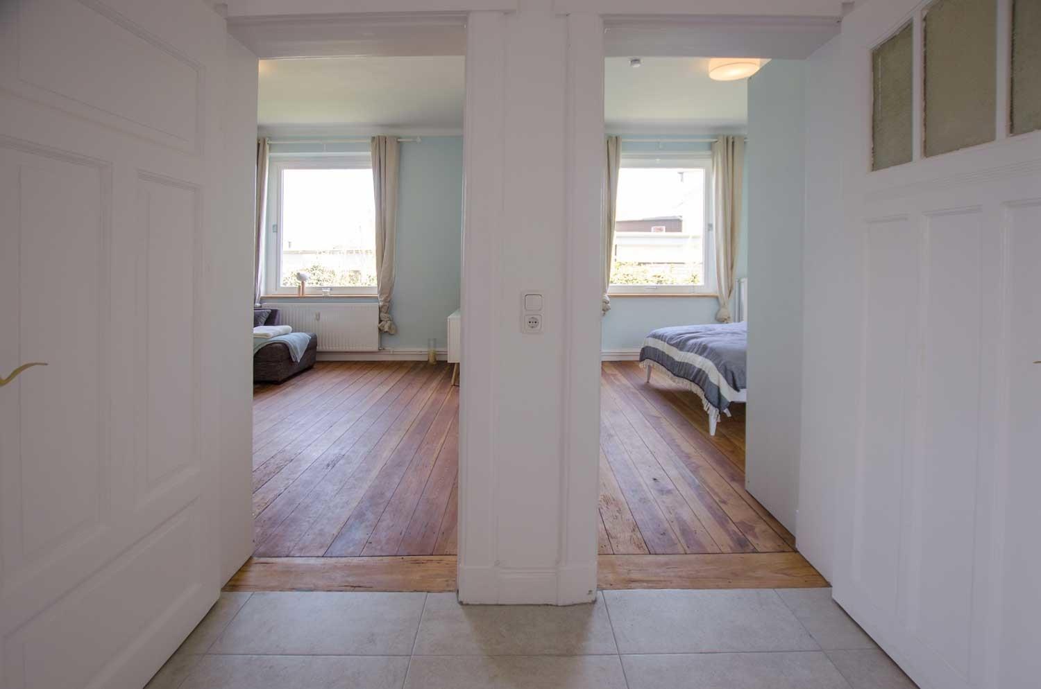 Von hier aus haben Sie Zugang zur Terrasse, zum Badezimmer, zum Schlafzimmer und zum Wohnraum.