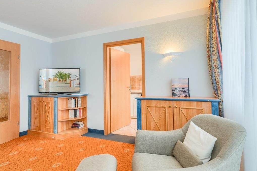 Es erwartet Sie eine drei Zimmerwohnung auf ca.68 m² für max. 4 Erw. + ein Kleinkind. ein großer Eingangsbereich mit Garderobe, ein geschmackvoll eingerichteter Wohnraum mit Sofabereich, Flachbild-TV, Esstisch und direktem Zugang zum bestuhlten Balkon. eine separate Küche mit Geschirrspüler, Ceranfeld, Mikrowelle und Waschmaschine. Schlafraum (1) mit Doppelbett (2x90x200), Kleiderschrank, Nachtisch, Nachtischlampe und Flachbild-TV. Schlafraum (2) mit zwei Einzelbetten (90x200), Kleiderschrank, Nachtisch, Nachtischlampe. sowie einem Duschbad mit Dusche, Waschbecken, Spiegelschrank und WC. WLAN steht Ihnen kostenfrei zur Verfügung.