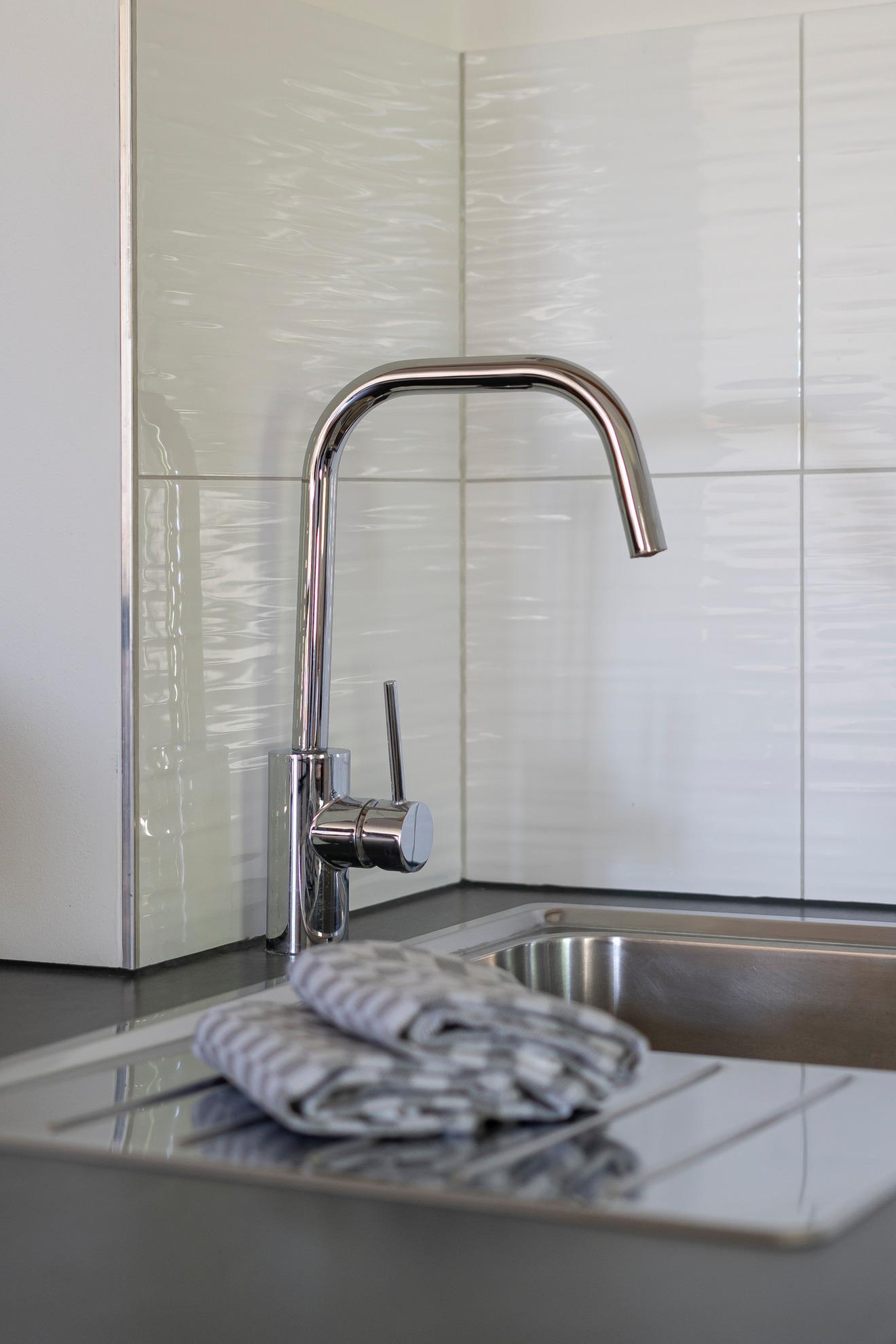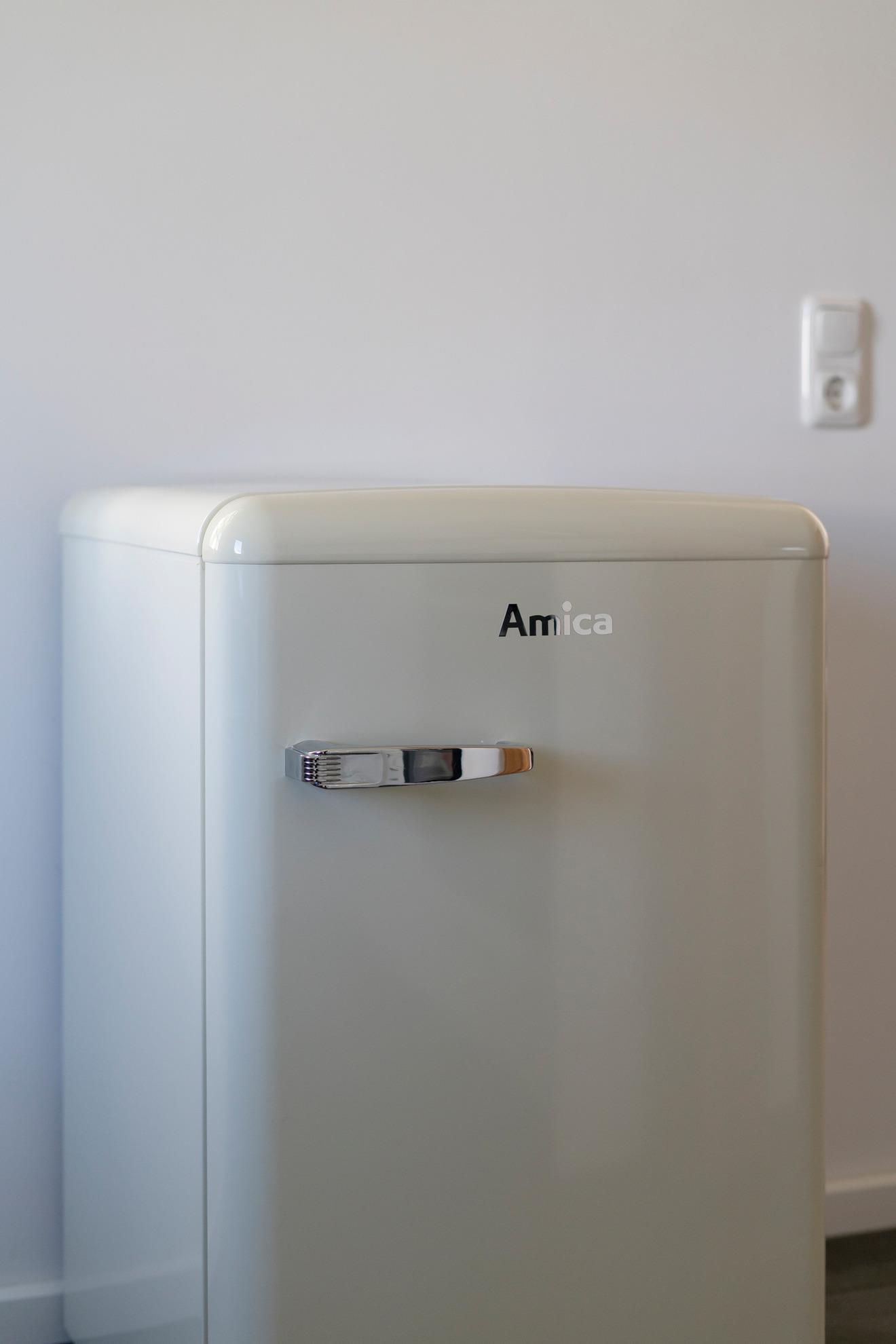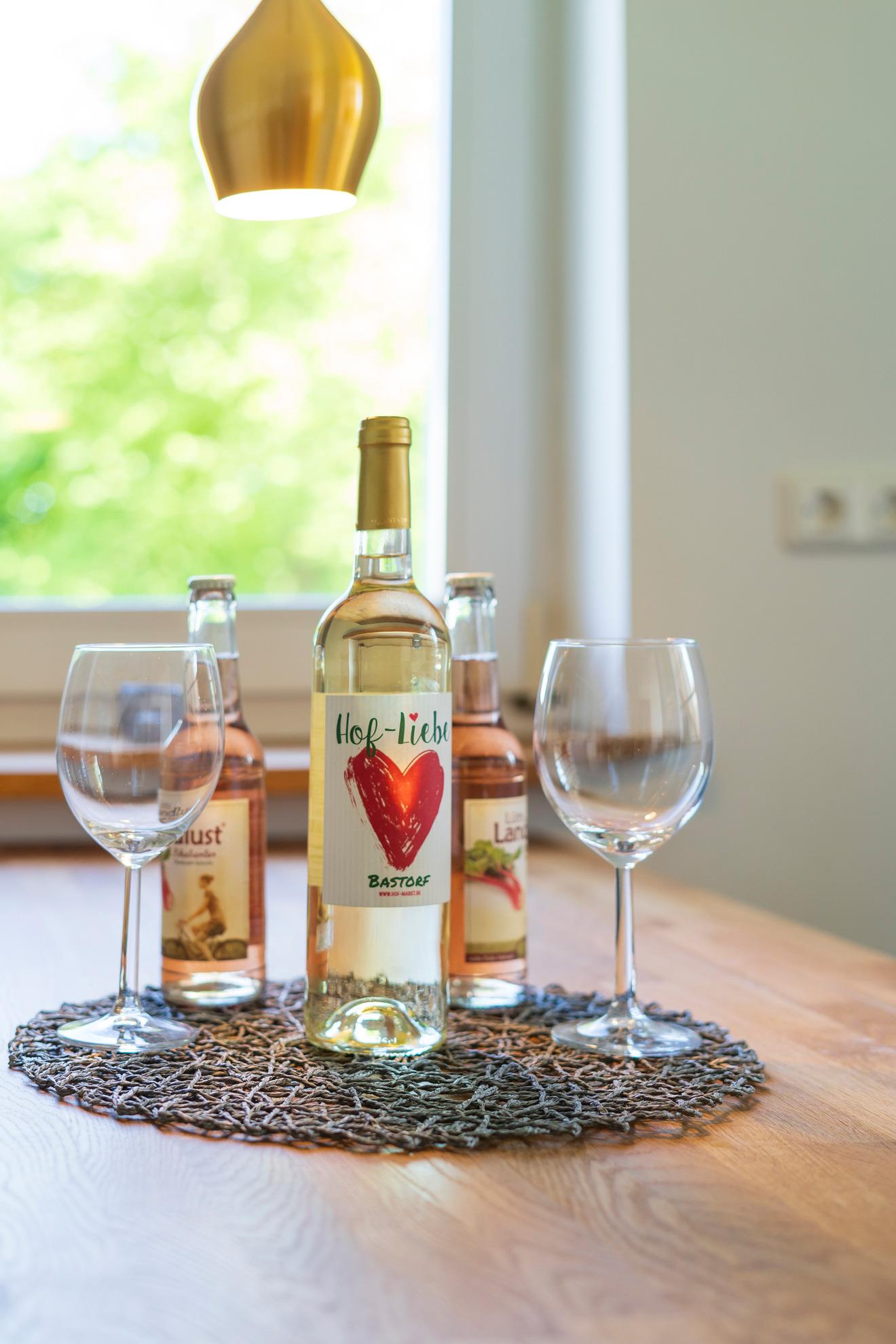 Die Küche ist mit Induktionskochfeld (4 Platten), Backofen (mit Umluft) und Geschirrspülmaschine so ausgestattet, dass hier auch richtig gekocht werden kann. Wenn der Restaurantbesuch durch äußere Umstände nicht ganz so attraktiv ist, kann das ein wichtiges Argument sein. Küchenwerkzeuge wie gute Töpfe und Pfannen, Küchenwaage, Auflauf- und Backform machen die Küche komplett. Mikrowellen sind aus unserer Sicht ein Werkzeug der 1980er, aus gutem Grund wurde darauf verzichtet. Gute Lebensmittel bekommen Sie in der Umgebung auf dem DEMETER Hof Klostersee (Milchprodukte, Fleisch, Brot und das übliche Bio-Handelssortiment) und bei Bauer Schütt (Obst und Gemüse).