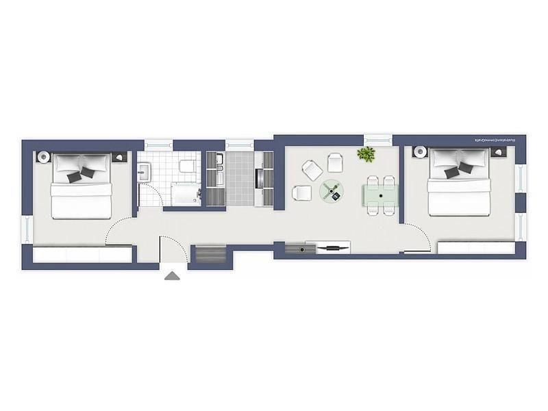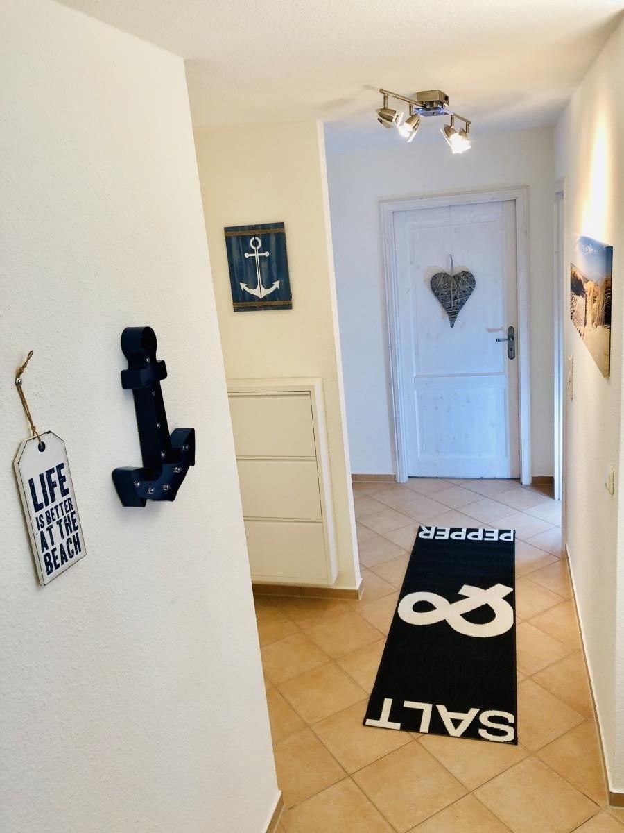 Die zwei gemütlich eingerichteten Schlafzimmer (eines davon mit seitlichem Ostseeblick) bieten sowohl den Eltern als auch den Kindern jeweils Platz in einem Doppelbett. Der Wohnbereich bietet Platz für eine kleine Essecke mit rundem Tisch und ein bequemes 3er Sofa. Für schlechtes Wetter befinden sich im Wohnbereich ein Flachbild TV, Hi-Fi Anlage mit DVD Funktion, eine Auswahl an Büchern und Gesellschaftsspiele. Eine kleine vom Flur abgehende vollausgestattete Küche u.a. mit Ceranfeld, Geschirrspüler, Mikrowelle, und Kühlschrank inkl. Gefrierfach steht selbstverständlich auch zur Verfügung. Zur Wohnung gehört auch noch eine Gemeinschaftswaschküche mit Waschmaschine und Trockner.