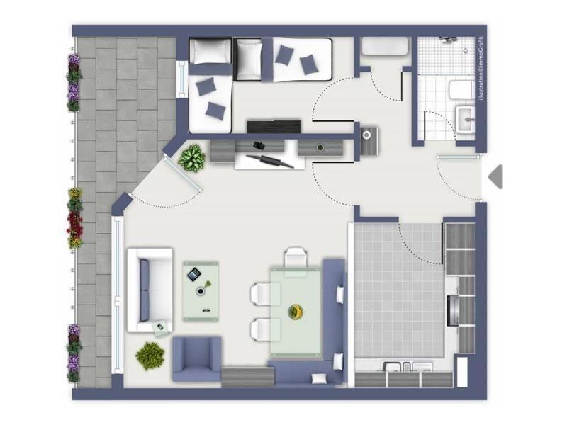 Durch den hauseigenen Zugang zum Strand sind kurze Wege garantiert. Das Wohnzimmer besitzt eine gemütliche Sitzecke und eine Essecke mit Durchreiche zur Küche. Einbauküche und Duschbad sind sehr hochwertig und gut ausgestattet. Es gibt ein separates Schlafzimmer mit zwei Einzelbetten.
