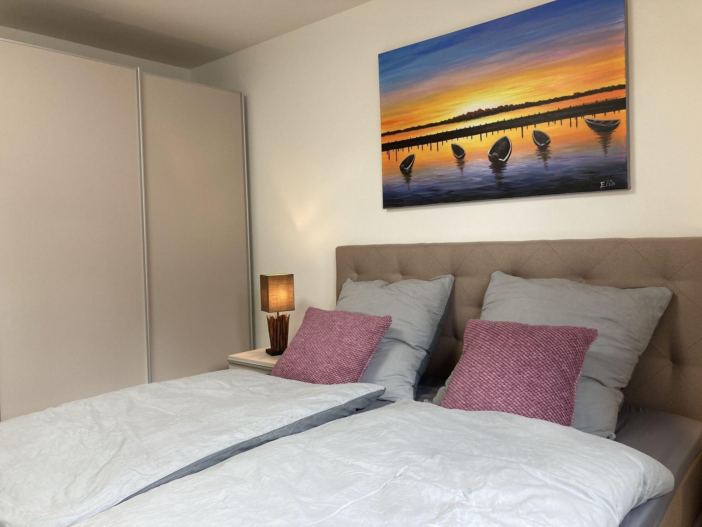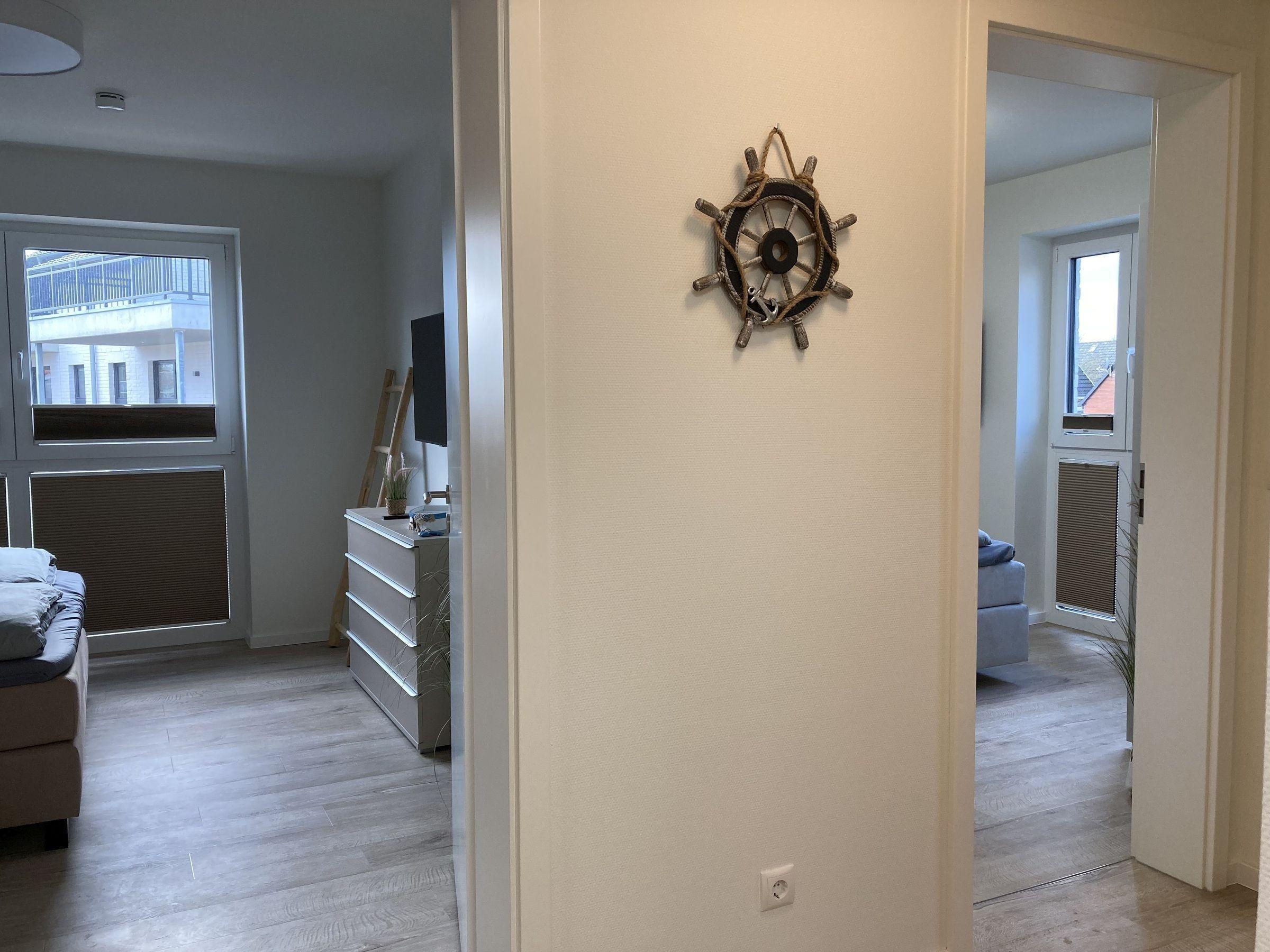 Die Ferienwohnung selbst verfügt über zwei Schlafzimmer, jeweils mit 43-Zoll Smart-TV, Kleiderschrank, Verdunklungsrollos und Boxspringbett (180 cm x200 cm), ein Gäste-WC und ein hochwertiges Tageslicht-Master-Bad mit eigener Sauna.