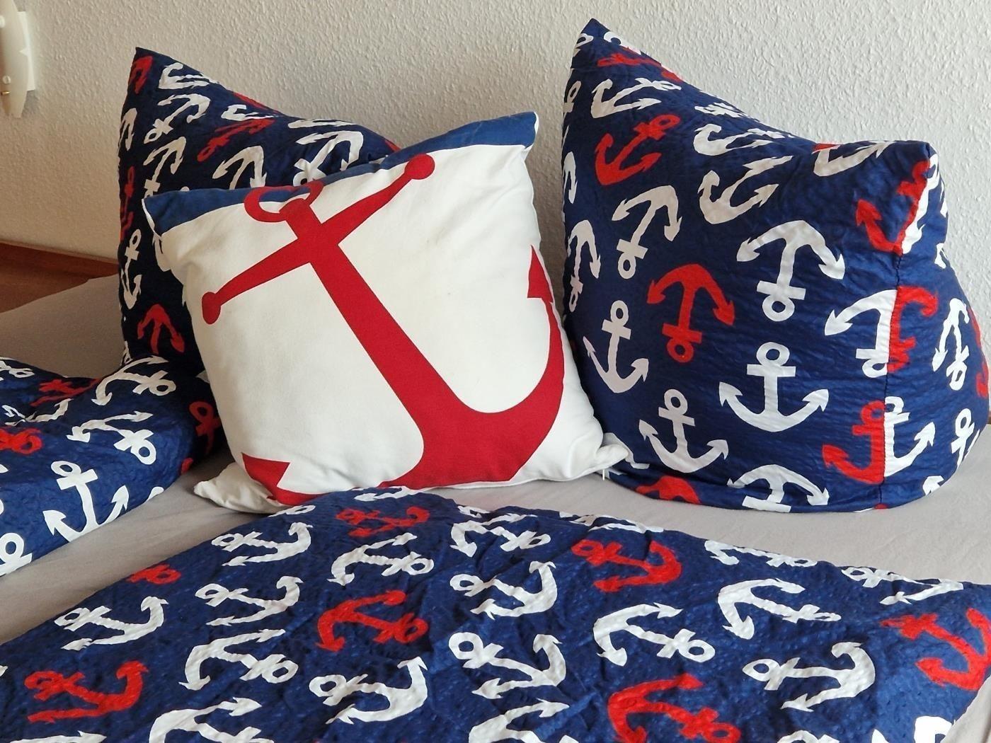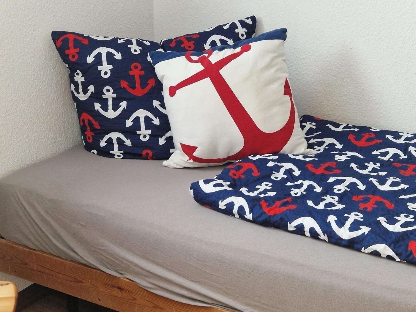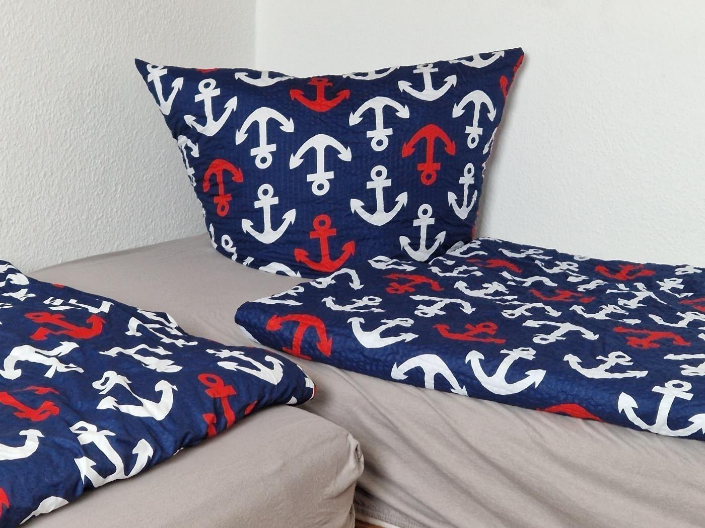 Diese Wohnung besteht aus drei Zimmern. Zwei davon sind Schlafzimmer. Das eine Schlafzimmer ist mit einem Doppelbett ausgestattet. Das andere Schlafzimmer ist mit zwei Einzelbetten ausgestattet. Im Wohn- und Essbereich befindet sich neben dem Sofa eine Essecke und ein Fernseher. Die Küche ist mit allem nötigen ausgestattet und bietet ihnen die Möglichkeit auch im Urlaub zu kochen. Eine Waschmaschine und ein Trockner stehen all unseren Gästen zur Verfügung (5 Euro/Wasch- oder Trockengang). Die Anlage verfügt über W-Lan.