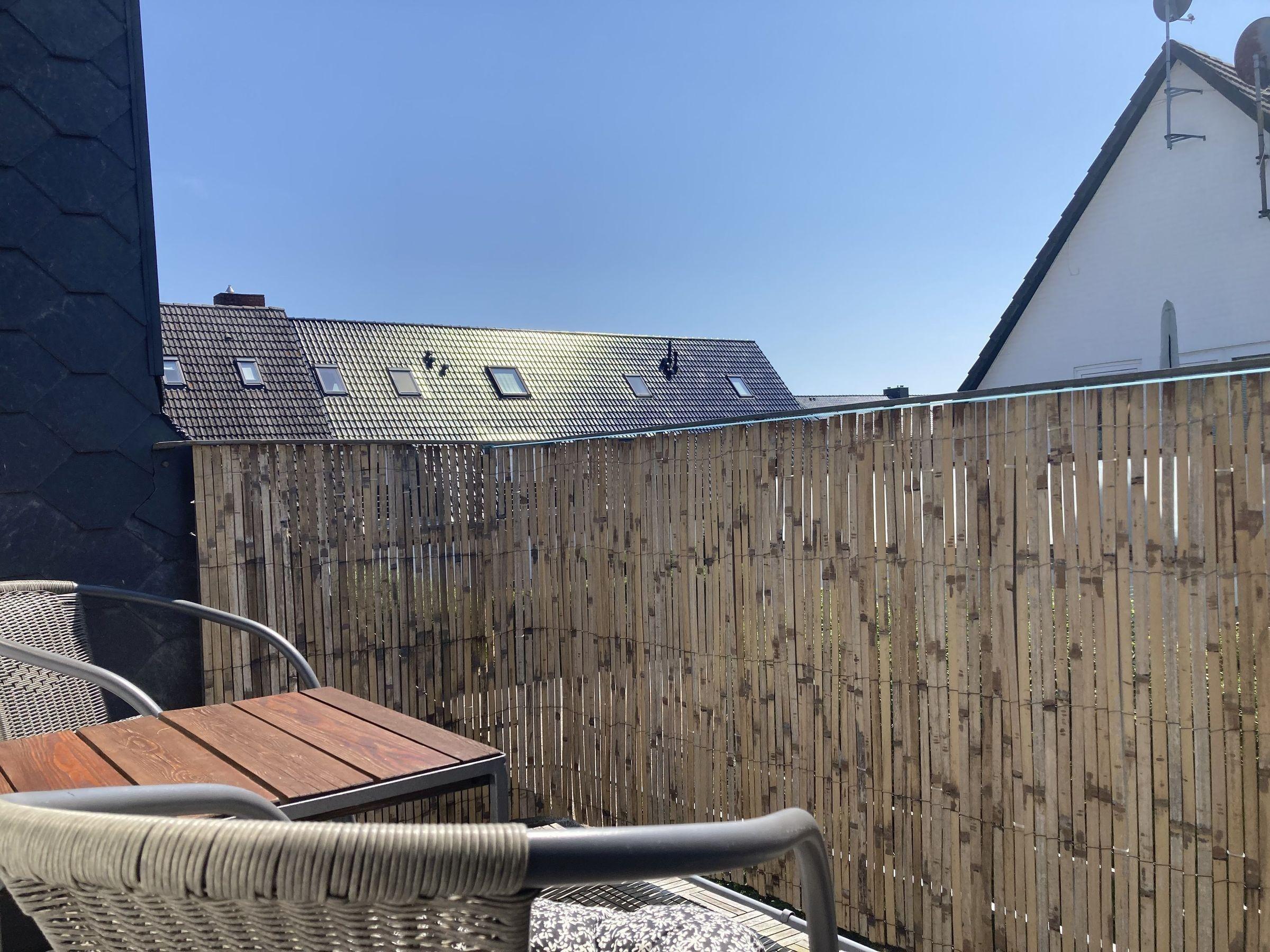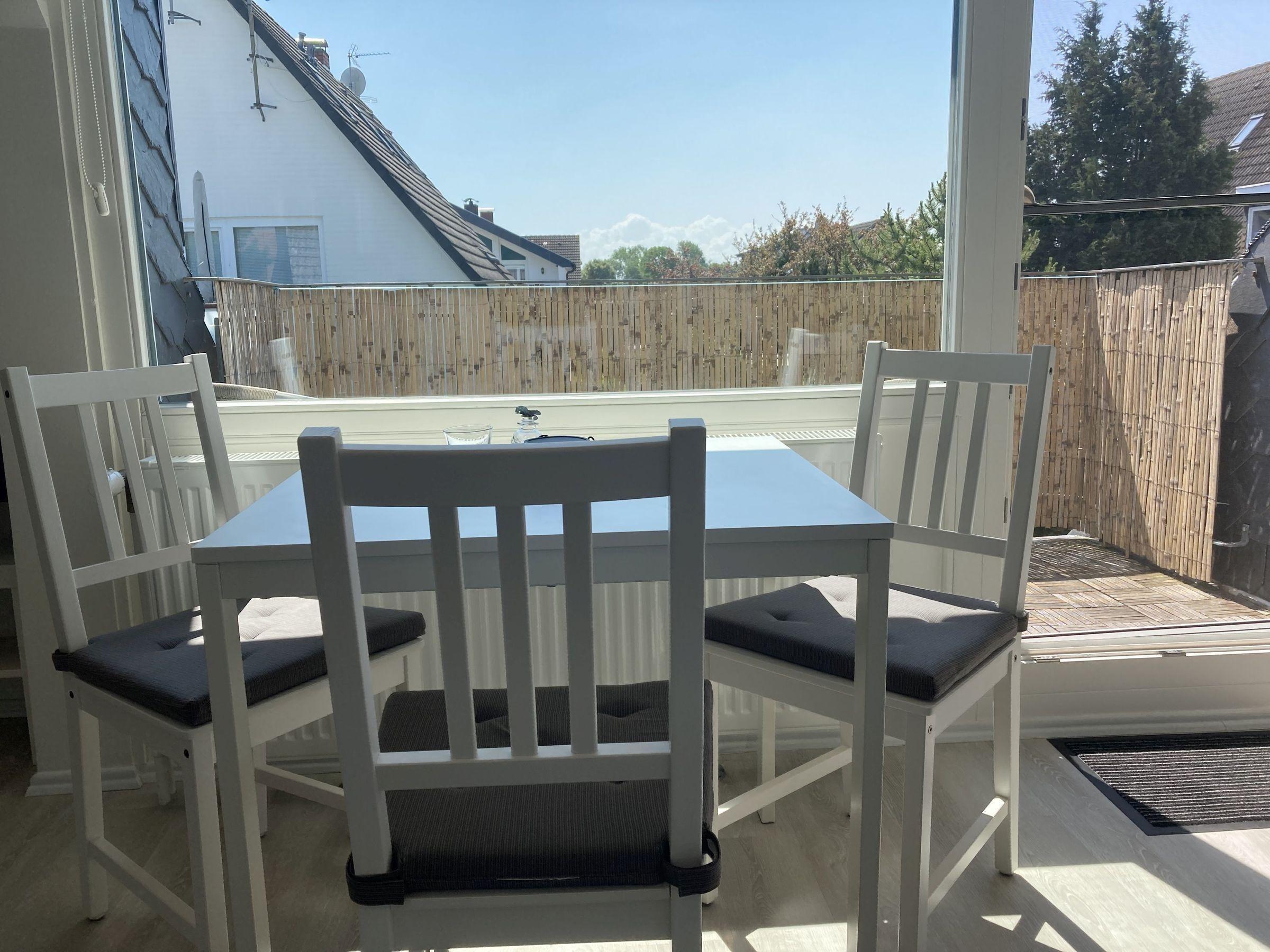 Zu der Wohnung gehört ein PKW-Stellplatz und ein Balkon mit Tischchen und 2 Stühlen. Fährräder können am Haus abgestellt werden.