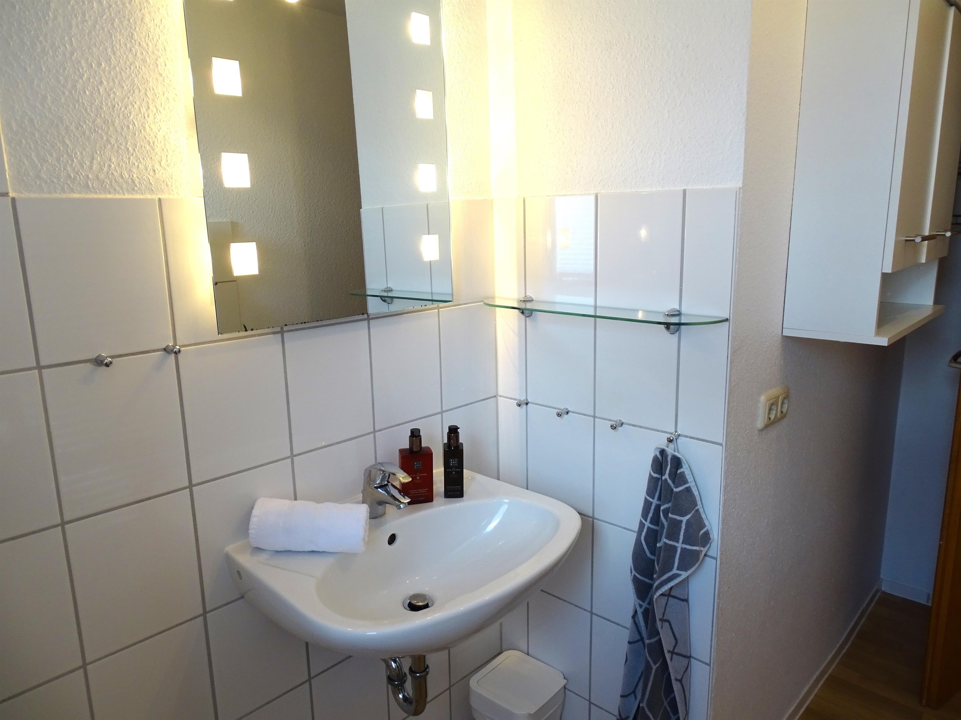 Waschmaschine und Trockner sind gegen Gebühr im Nachbargebäude nutzbar.