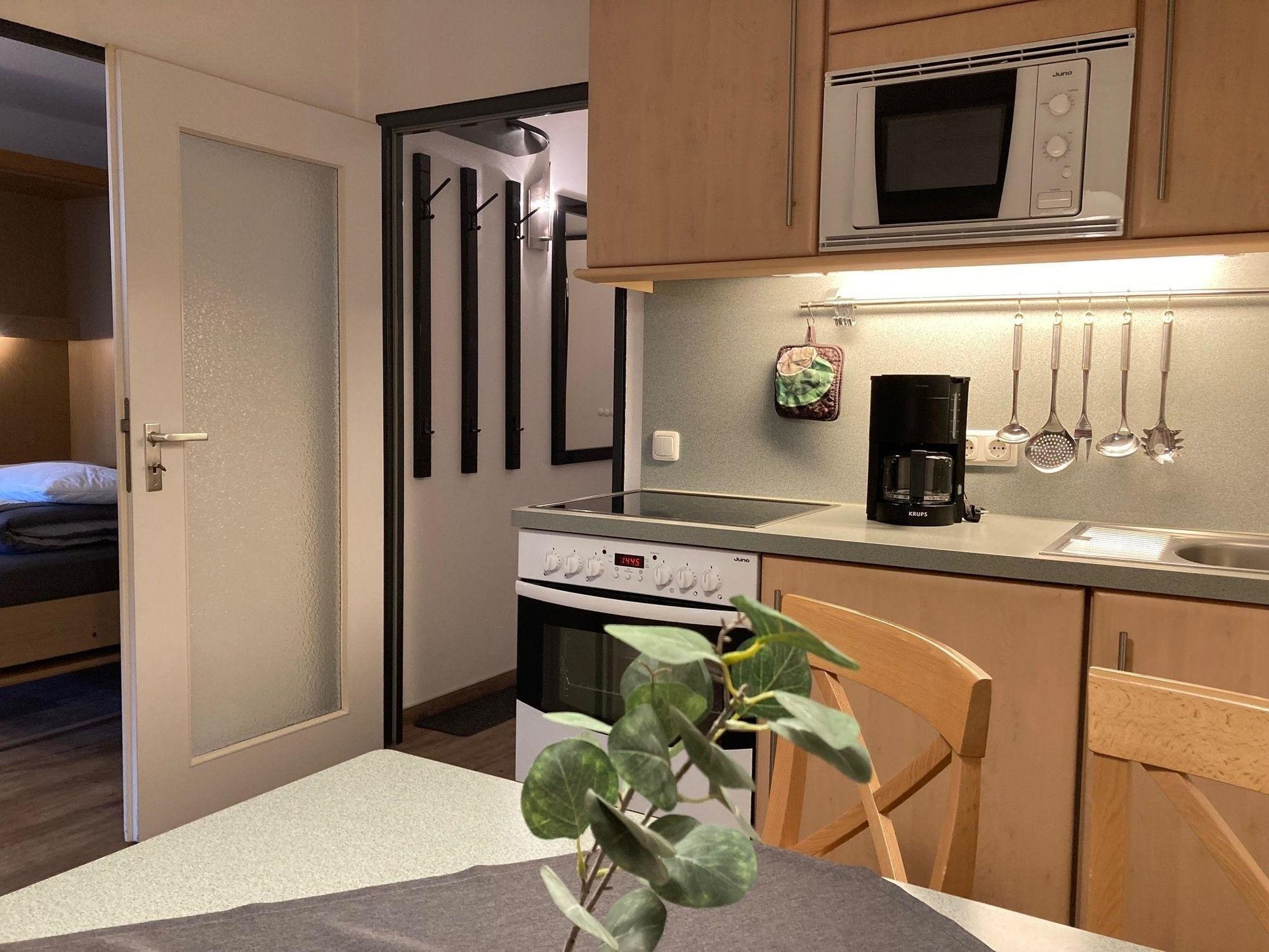 Die gemütliche Ferienwohnung bietet alles, was man für einen entspannten Urlaub braucht. Das helle Wohnschlafzimmer lädt zum Verweilen ein und ist mit einer HiFi-Anlage und einem TV ausgestattet. Die separate Küche verfügt über einen Elektro-/Gasherd, einen Backofen, eine Mikrowelle, einen Kühlschrank mit Gefriermöglichkeit, eine Kaffeemaschine, einen Toaster und einen Wasserkocher. Neben einem Esstisch bietet die Wohnung auch einen Parkplatz, einen Wäschetrockner, eine Waschmaschine, einen Fahrstuhl und WLAN. Im Schlafzimmer stehen ein gemütliches Doppelbett und ein geräumiger Schrank bereit. Das Badezimmer ist mit einer Badewanne, einem Spiegel, einem Kosmetikspiegel und einer Heizung ausgestattet. Zudem gibt es einen Rauchmelder, einen Staubsauger, einen Wäscheständer und eine Garderobe. Mit all diesen Annehmlichkeiten fühlen sich Gäste hier wie zuhause.