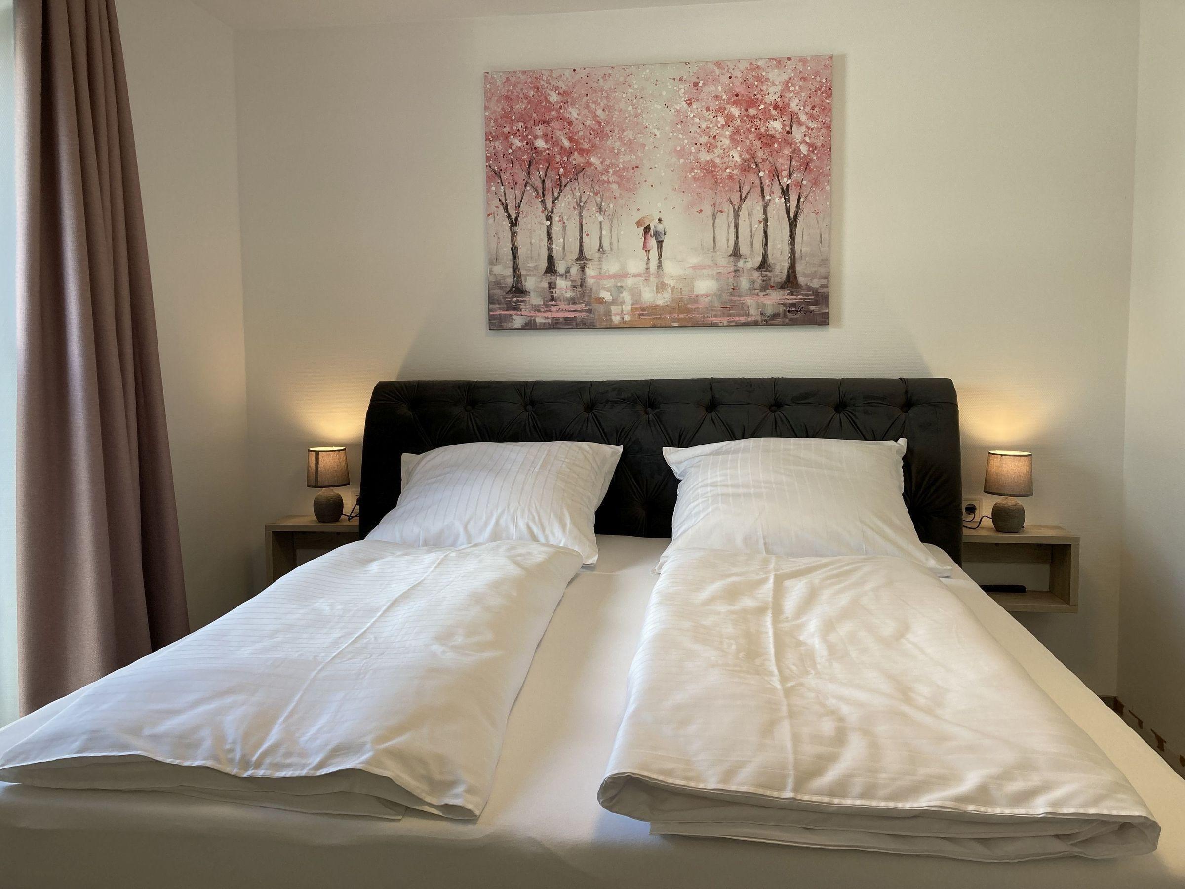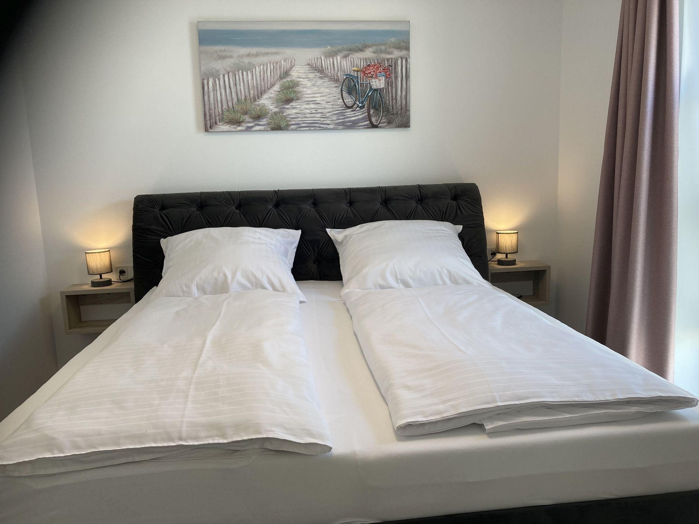 - Schlafzimmer mit hochwertigem Doppelbett, Kleiderschrank und TV,
