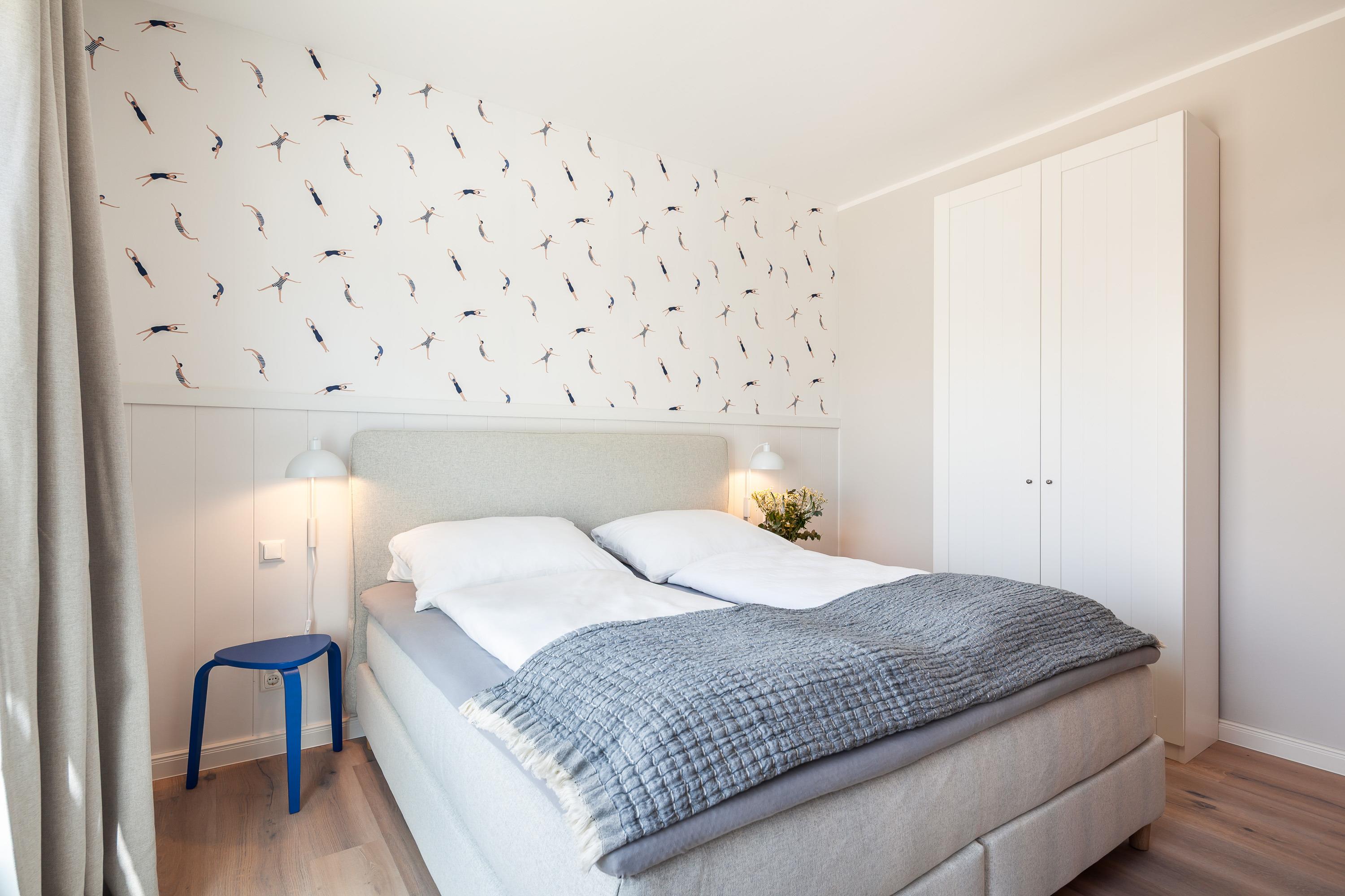 Die Ferienwohnung bietet ein gemütliches Boxspringbett (180x200 cm) und einen geräumigen Kleiderschrank. Das Tageslichtbadezimmer verfügt über eine ebenerdige Dusche, die den Komfort Ihres Aufenthalts erhöht.