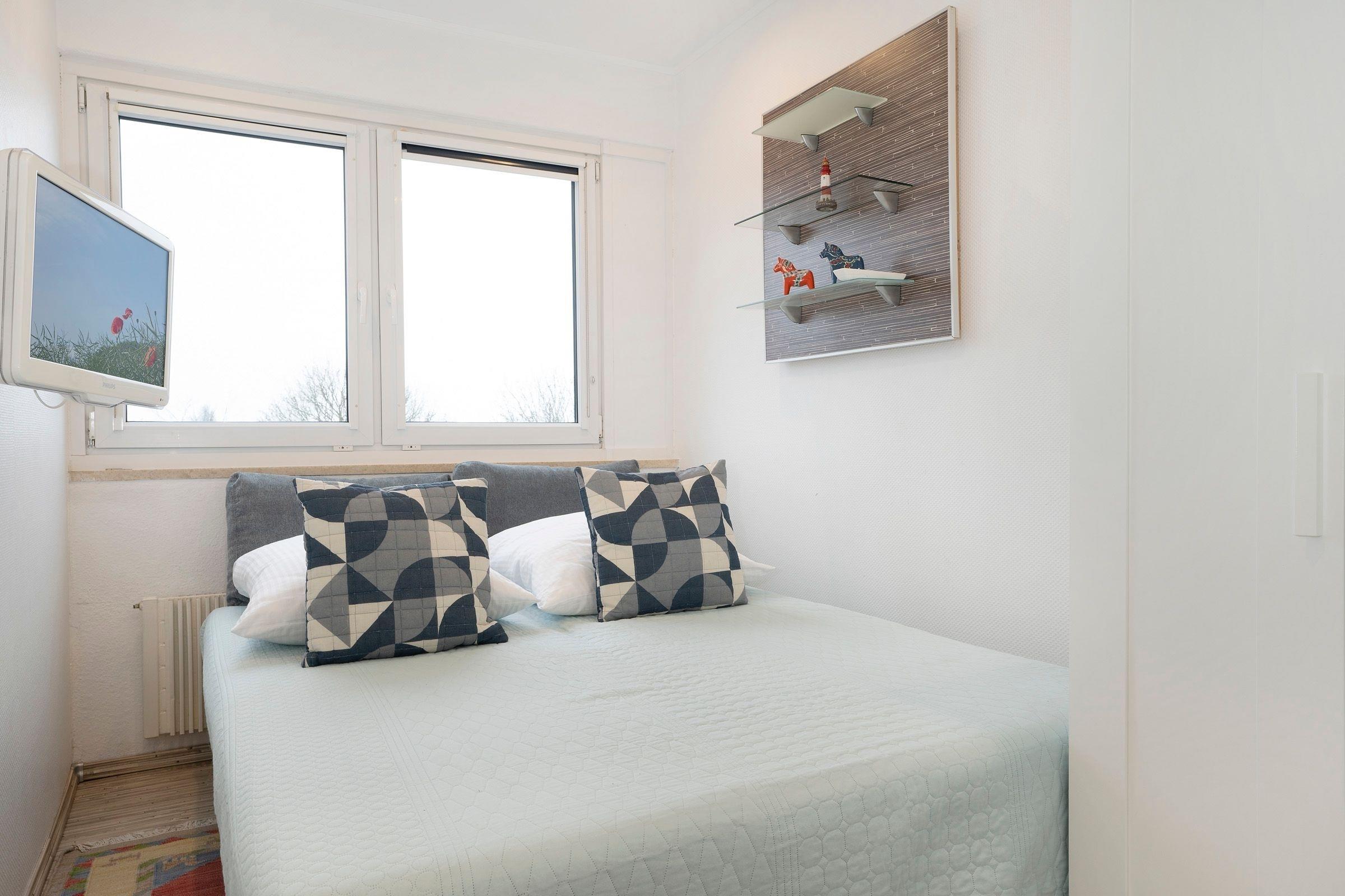 Schlafzimmer: 2 ausklappbare Schlafsessel (140x200 cm), TV, Kleiderschrank