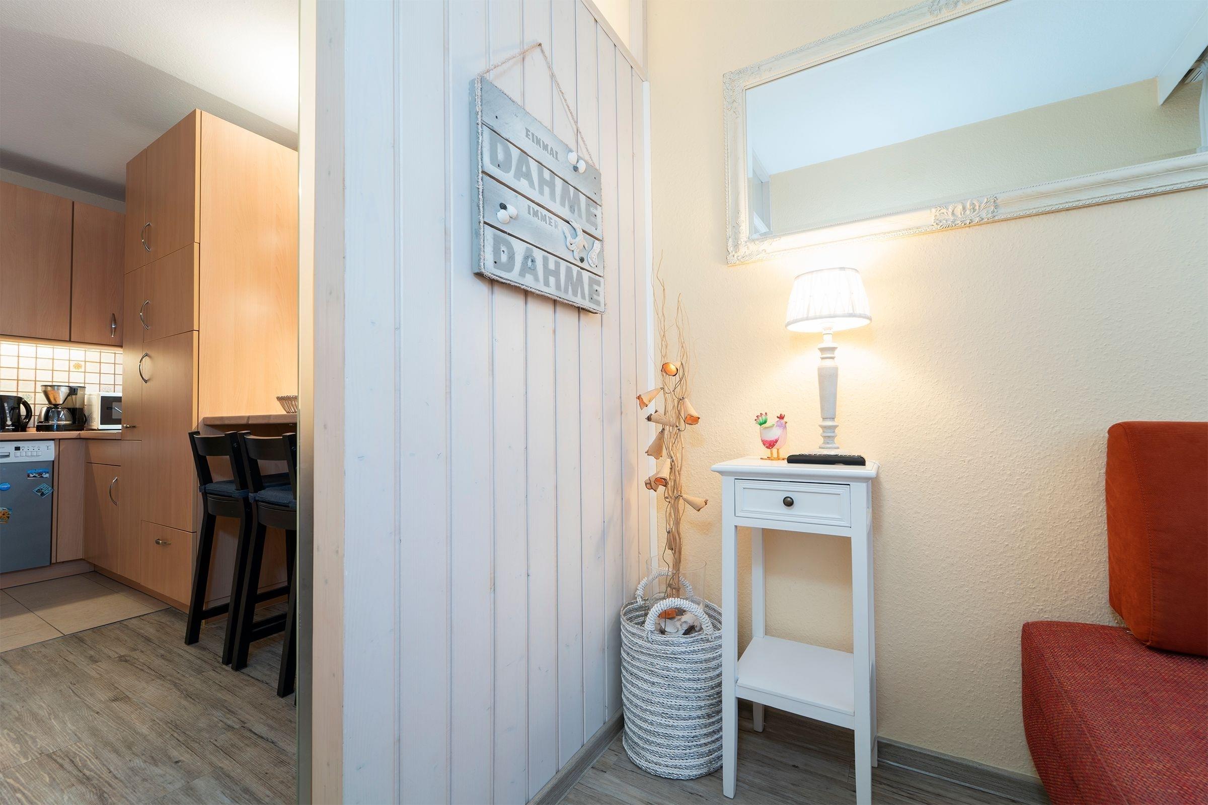 Die Schlüsselübergabe erfolgt über einen Tresor am Kraushaar Ferienwohnungen Servicebüro, Lange Wiese 4, 23747 Dahme.