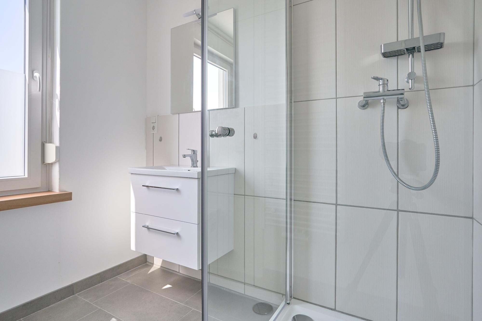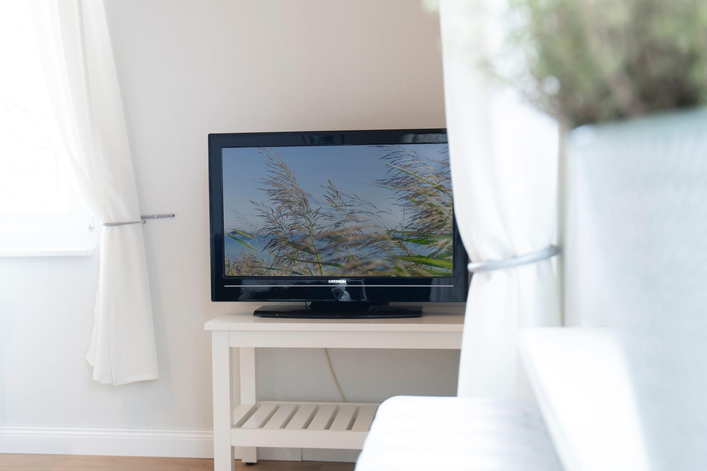 Durch einen kleinen Flur betreten Sie den gemütlichen Wohnraum mit integrierter neuer Küchenzeile. Ein Sofa mit TV lädt zum Entspannen nach einem ereignisreichen Urlaubstag ein. In dieser Wohnung gibt es ein offenes WLAN-Netzwerk. Am großzügigen Esstisch können Sie die in der Küche zubereitete Köstlichkeiten genießen. Mit Herd und Backofen, Kühlschrank, Kaffeemaschine, Wasserkocher und Toaster können Sie sich im Urlaub problemlos selbst verpflegen. Nebenan befindet sich das geschmackvolle Schlafzimmer, hier lädt ein komfortables Doppelbett (180x200 cm) zum Träumen ein. Im Kleiderschrank können Sie mühelos die mitgebrachte Urlaubsgarderobe verstauen. Zur Nachtruhe können Sie die Wohnung mit Rollläden abdunkeln. Das hochwertige Badezimmer mit bodentiefer Dusche Waschtisch und WC runden das Angebot dieser schönen Ferienwohnung ab.