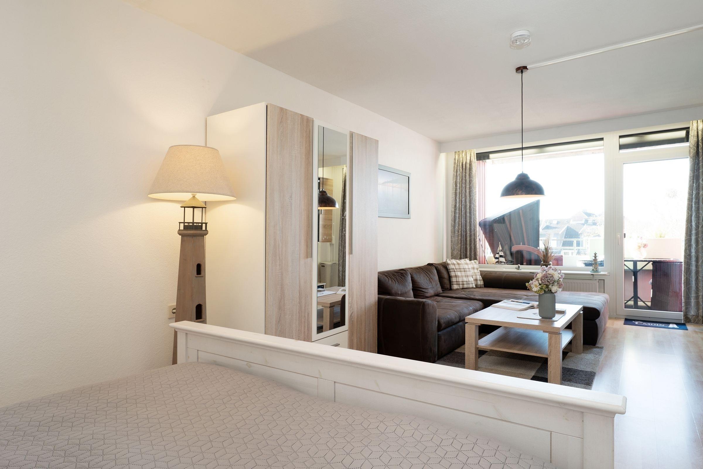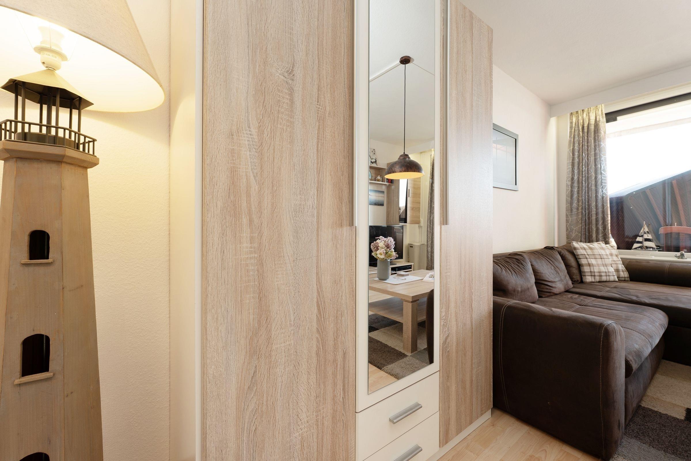 Das Herzstück der Wohnung bildet der kombinierte Wohn- und Schlafraum mit einem Bett (180x200 cm) und einer großen Sofalandschaft sowie dem direkten Balkonzugang. Der möblierte Balkon mit Strandkorb ist nach Süden ausgerichtet und garantiert Ihnen viele schöne Sonnenstunden. Für Unterhaltung im Urlaub sorgen ein Fernseher mit DVD-Player und ein Blu-ray-Player. Das separate Schlafzimmer ist mit zwei Einzelbetten (je 80x200 cm) und einem zweitem Fernseher möbliert. Die separate Küche ist mit Annehmlichkeiten wie z. B. einem Backofen in praktischer Arbeitshöhe, einer Spülmaschine, einem Kühlschrank sowie einer gemütlichen Essecke gut ausgestattet. Durch den Flur gelangen Sie in das komfortable, innenliegende Badezimmer mit bodengleicher Dusche und Handtuchwärmer. Von der Wohnung aus sind es nur wenige hundert Meter bis zum idyllischen Ostseedeich, Promenade und feinsandigem Strand. Auch bis zur Ortsmitte mit diversen Einkaufsmöglichkeiten, Bäckerfilialen, Cafés und Restaurants ist es nicht weit.