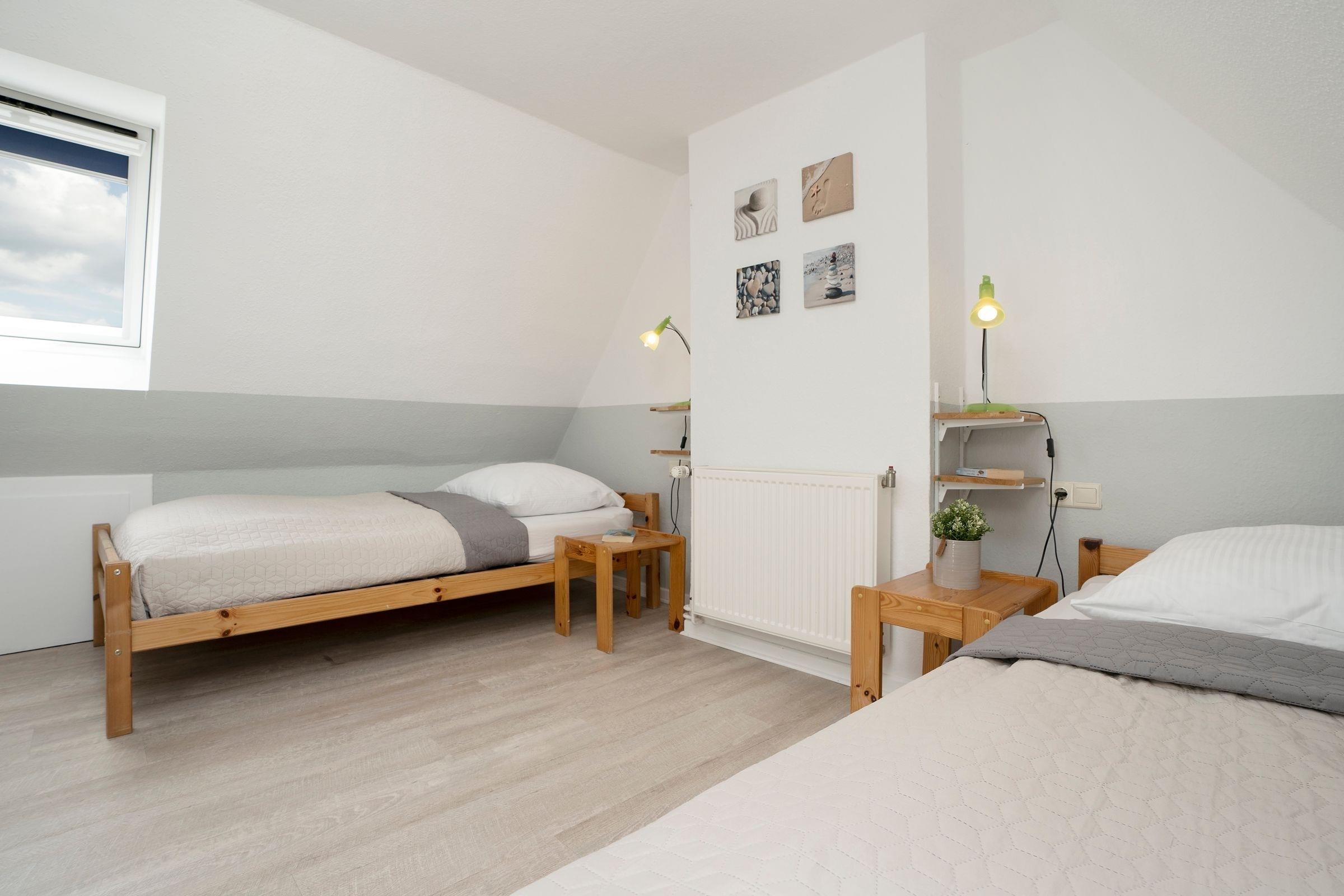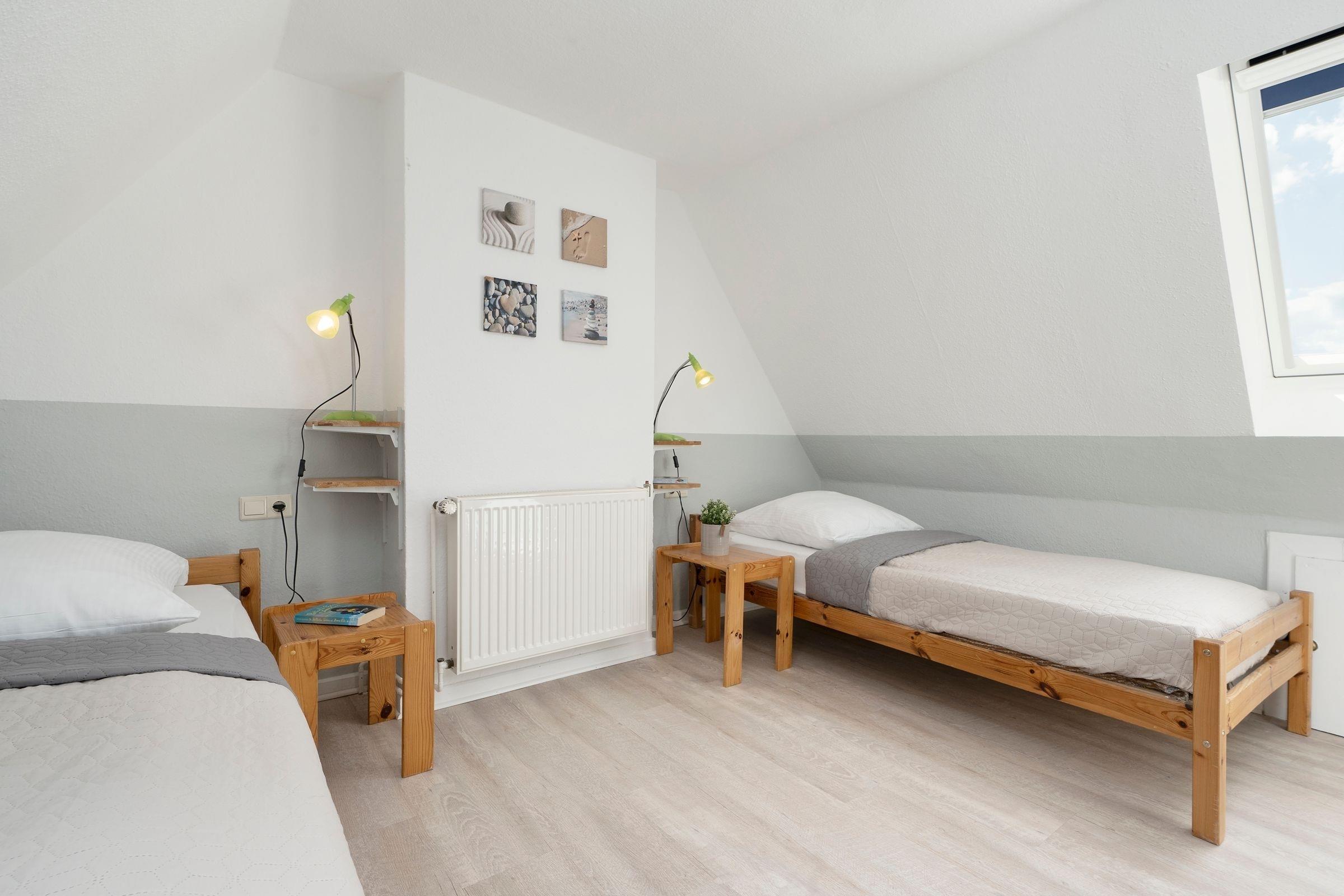 Schlafzimmer 2: 2 Einzelbetten (je 90x200 cm), Verdunkelung (Plissees)