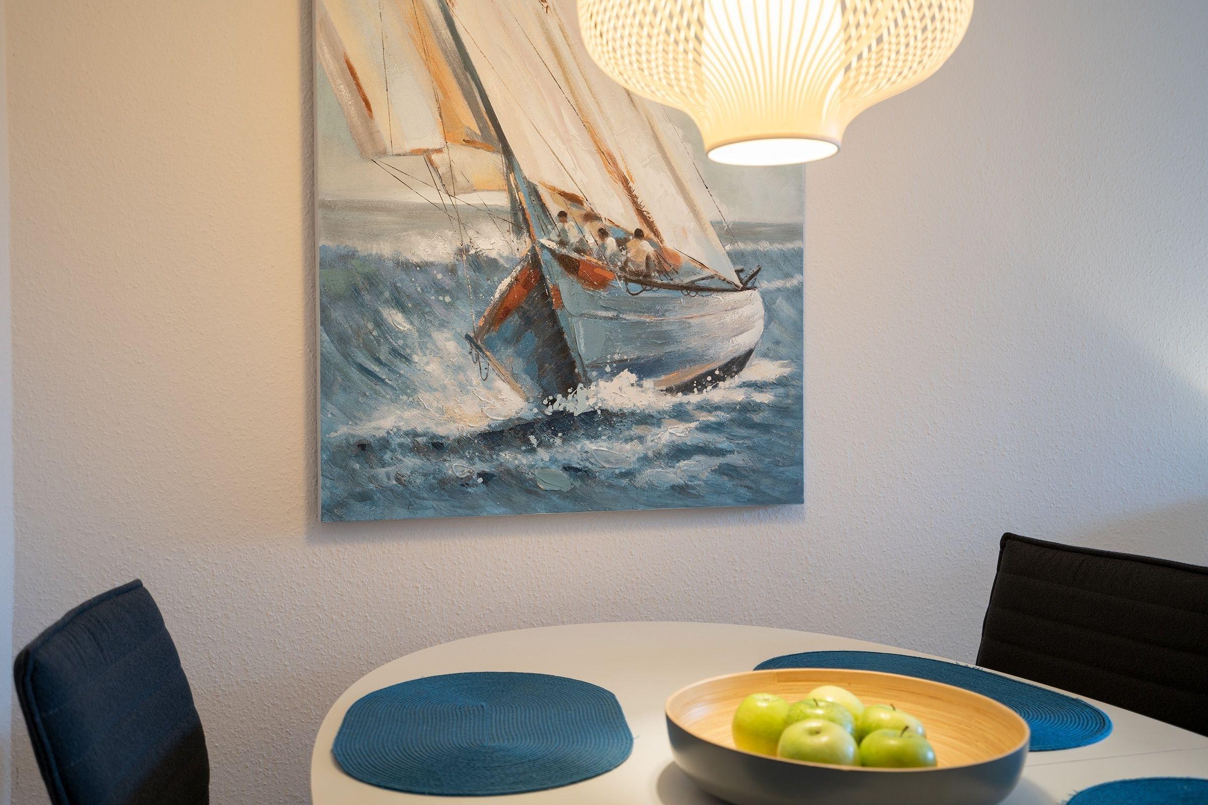 In dieser sehr geschmackvoll und komplett neu gestalteten Wohnung wird es Ihnen an nichts fehlen. Das hell und freundliche arrangierte Wohnzimmer mit Schlafcouch (ca. 160x200 cm), welches Sie mit viel Sonnenlicht verwöhnt, grenzt direkt an Ihren großen Balkon. Die Balkonmöbel laden Sie ein, den Tag mit einem Glas Wein ausklingen zu lassen. Die Küche ist neu und voll ausgestattet. Das Bad mit großer und moderner ebenerdiger Dusche wird Sie den modernsten Standard erfahren lassen. Ein Boxspringbett (180x200 cm) im geräumigen Schlafzimmer ist ebenso vorhanden wie ein 2. TV-Gerät und der Balkon der ebenfalls vom Schlafzimmer erreicht wird. Lauschen Sie dem Meer aus Ihrem Bett und beginnen Sie Ihren Tag in dieser Top Wohnung entspannt. Sie haben es sich verdient. Der Strand ist in nur wenigen Minuten erreicht. Herzlich Willkommen !