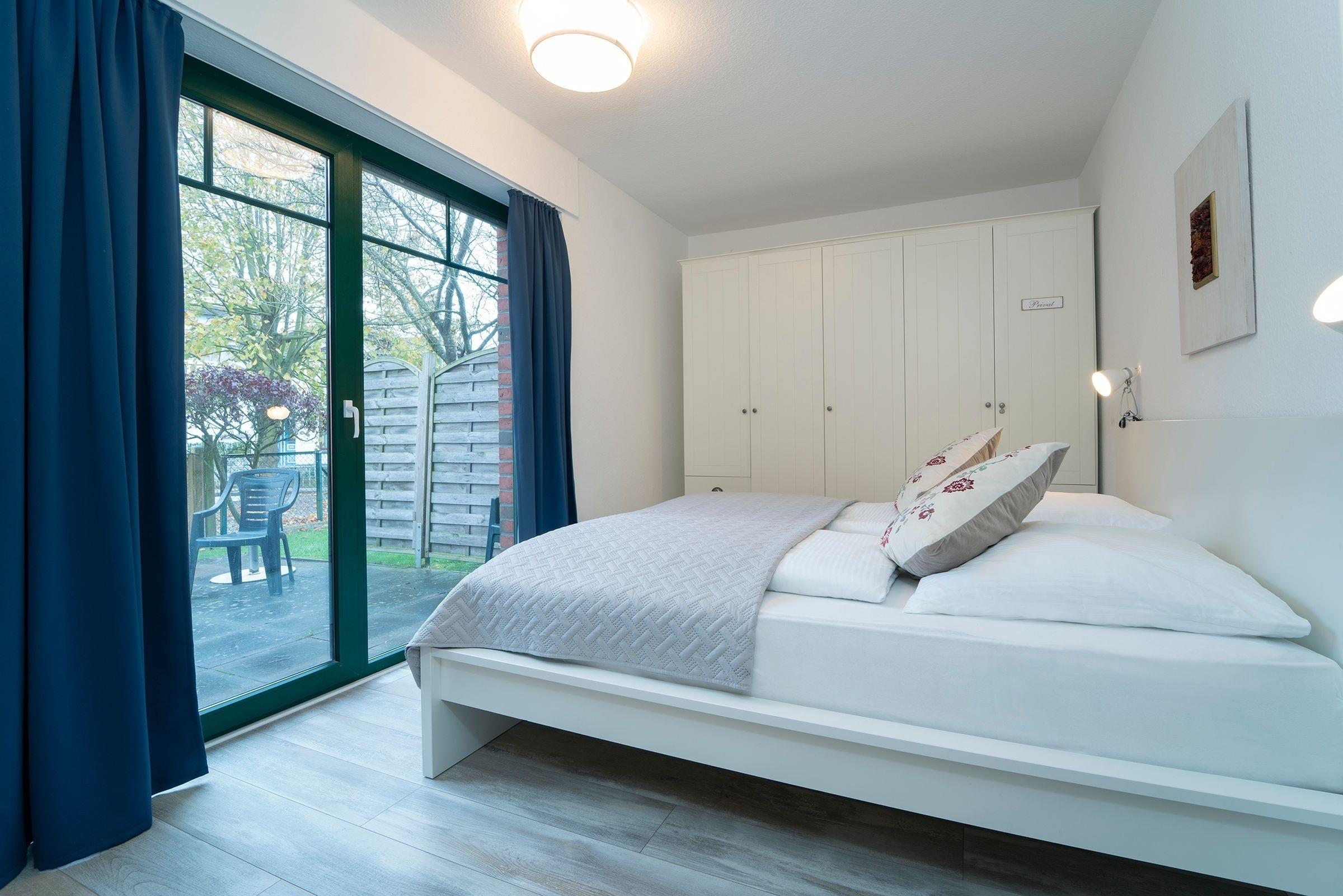 Schlafzimmer 1: 1 Doppelbett (180x200 cm), Kleiderschrank, Verdunkelungsmöglichkeit