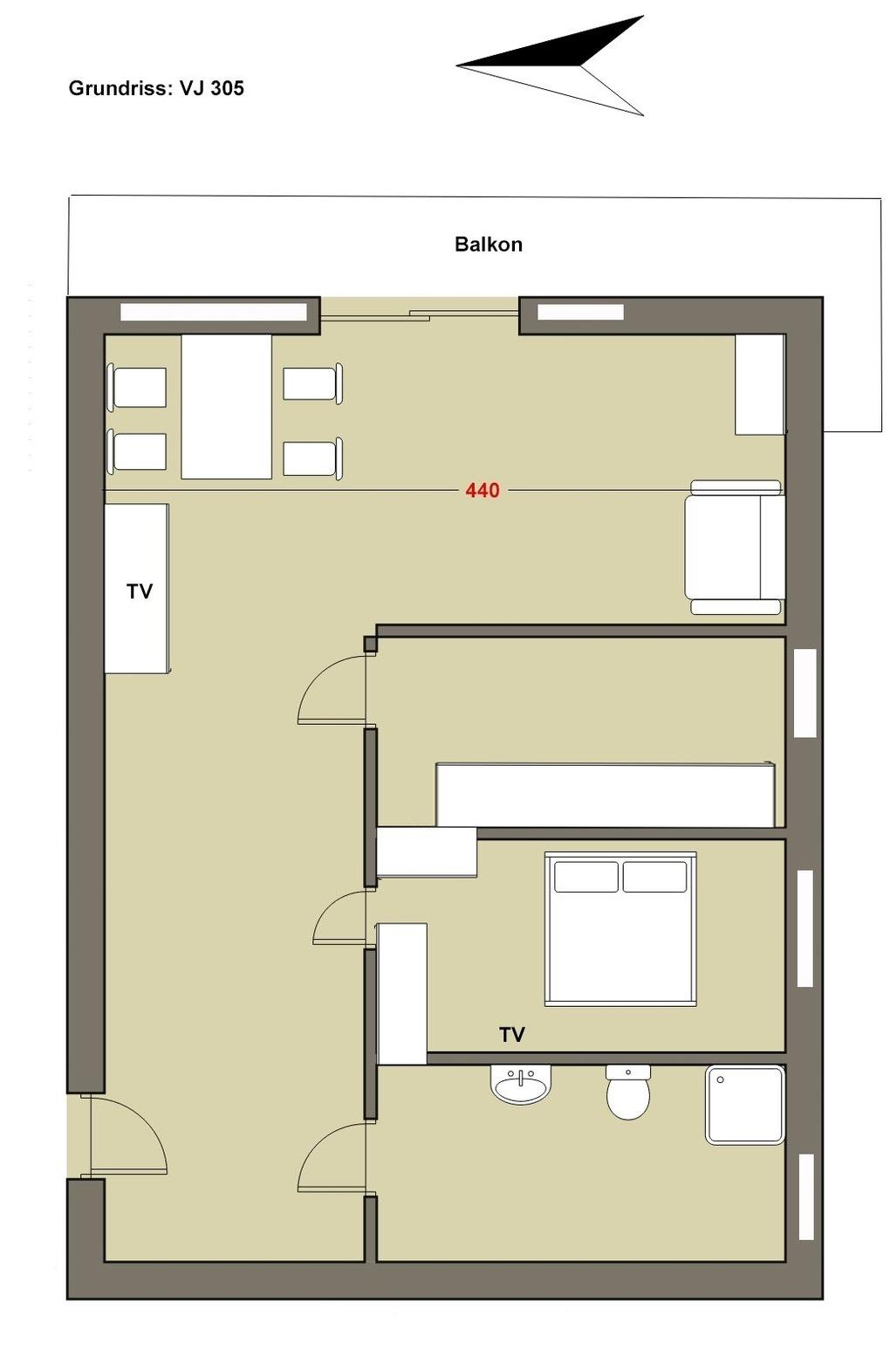 Wohnzimmer: 1 Schlafcouch (180 x 200 cm), TV, Verdunkelungsmöglichkeit