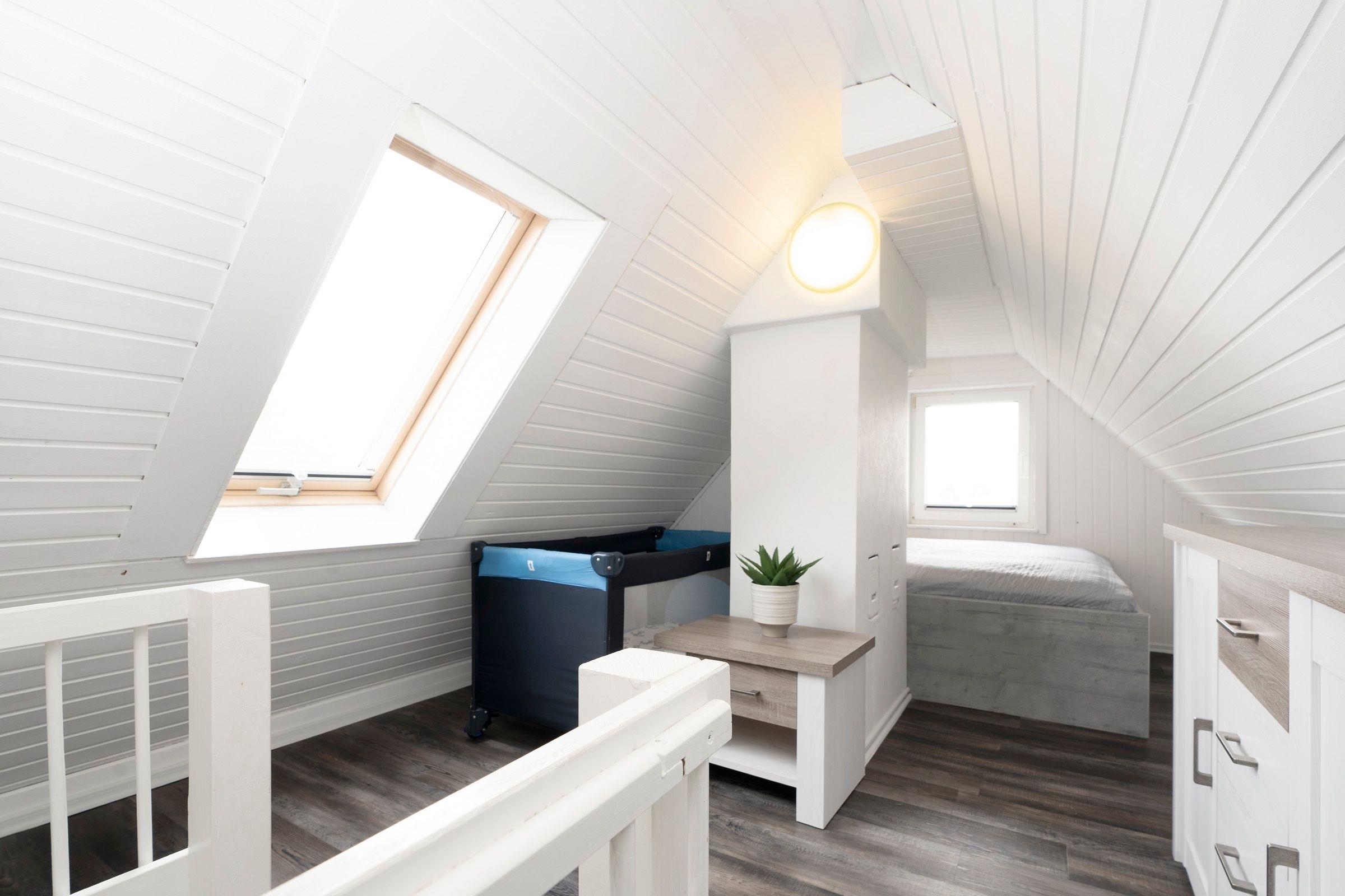 Vom gemütlichen Wohnzimmer führt ein direkter Zugang auf den möblierten Balkon mit eigenem Strandkorb mit Südwestausrichtung. Von hier aus hat man einen herrlichen Blick auf den Deich. Der obere Schlafbereich bietet Ihnen einen Teilmeerblick auf die Ostsee - pure Idylle! Das Wohnzimmer ist mit bequemem Boxspringsofa und Flachbild-TV eingerichtet. Die separate Küche verfügt über einem Essplatz und bietet Annehmlichkeiten wie eine Senseo-Kaffeemaschine und Mikrowelle. Vom kleineren Schlafzimmer mit Doppelbett (2x90x200cm) gelangt man über eine schmale Holztreppe in den zweiten offenen Schlafbereich mit weiterem Doppelbett (2x80x200cm). Das helle Badezimmer begeistert mit einer bodentiefer Dusche sowie einem praktischen Wasch-Trockner, sodass auch im Urlaub für frische Wäsche gesorgt ist.