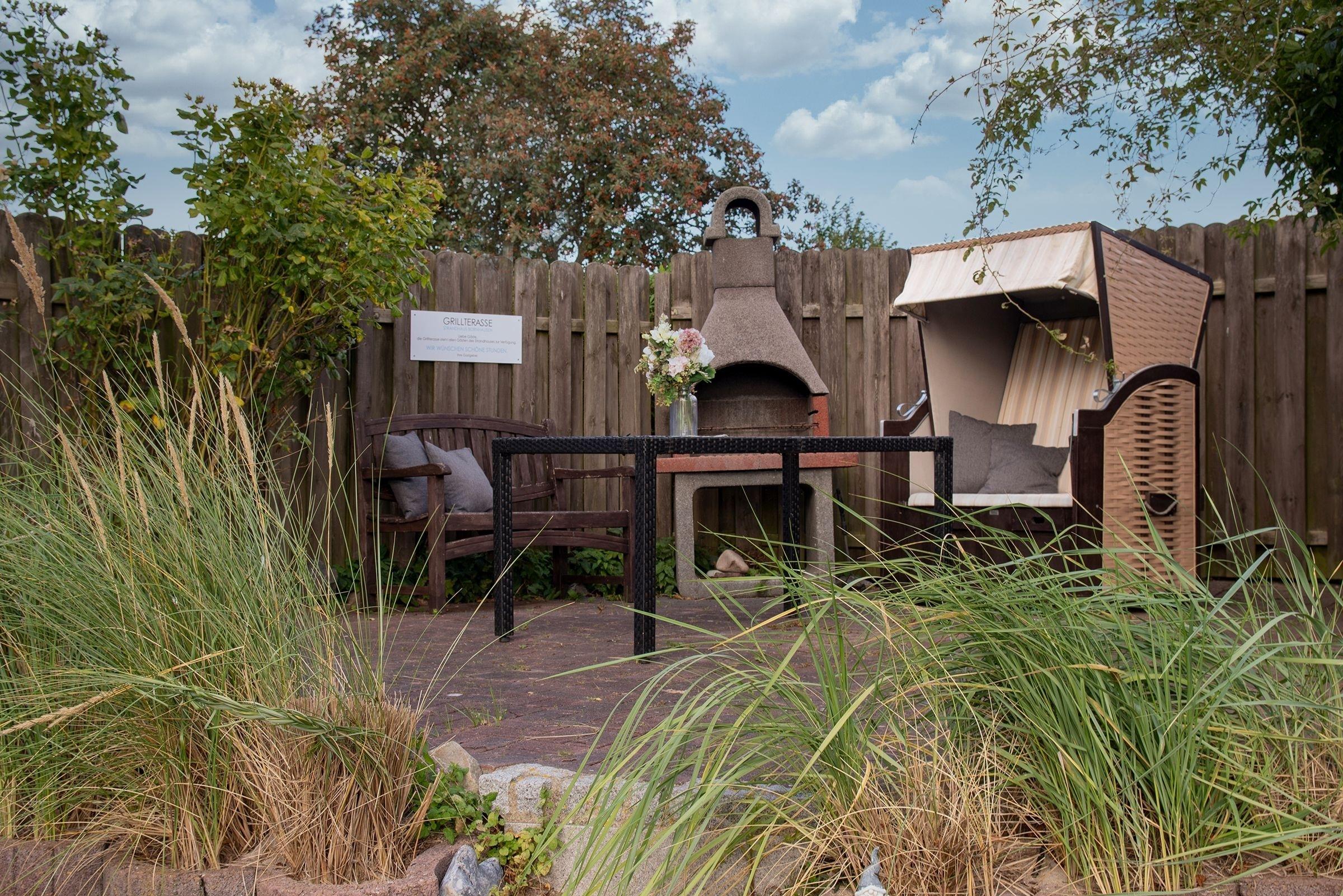 Ein PKW-Stellplatz direkt am Haus gehört selbstverständlich dazu. Ihre Fahrräder parken Sie im Fahrradabstellraum der Anlage. Im Garten können alle Feriengäste vom Strandhaus Bornhausen gemeinschaftlich einen Grillplatz sowie 2 Strandkörbe nutzen. WLAN ist inklusive. Zudem ist ein Kinderhochstuhl sowie ein Kinderreisebett vorhanden.