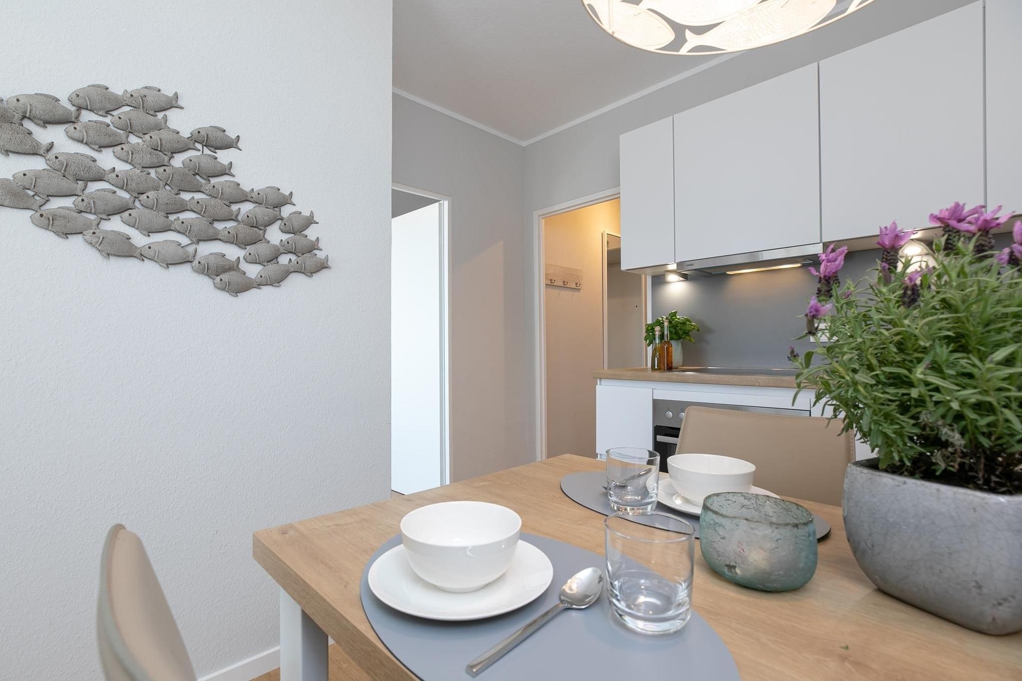 Wir fühlten uns sofort wohl! Die Wohnung ist mit sicherem Geschmack sehr ansprechend eingerichtet. Sogar Geschirr und Wäsche sind hübsch und in bestem Zustand. Ach ja, und der Blick auf die Ostsee ist wunderschön!
