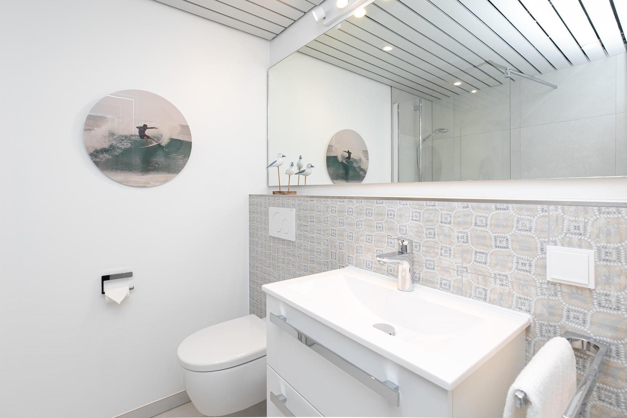Wunderschöner Meerblick, moderne und ansprechende Einrichtung. Schönes Badezimmer mit endlich mal genügend Abstellfläche. Einfach super.